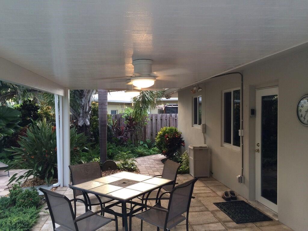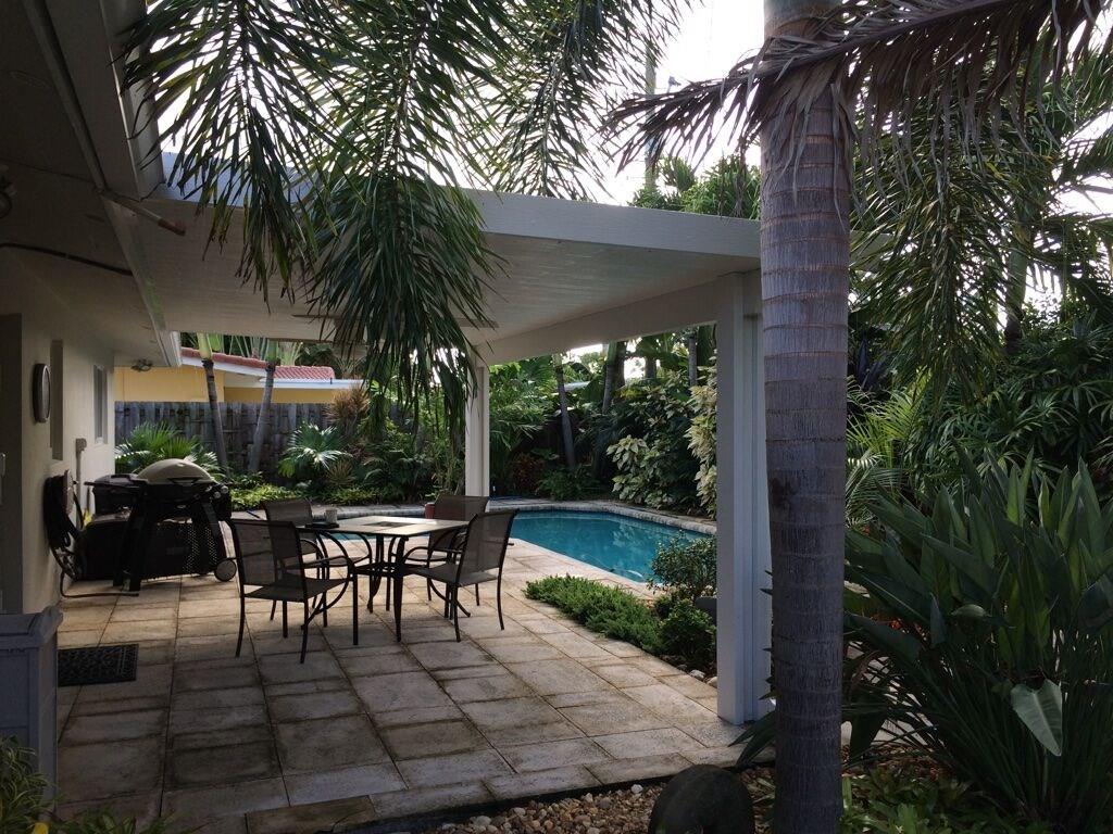 Great Location a few houses from intracoastal & blks to ocean,restaurants and newly developed Pompano Beach.Charming, spotless home with porcelain tile throughout. Open-Plan High end kitchen,Kraft made wood cabinets,granite counters & backsplash, SS appliances, and large granite table/island for dining. All windows and doors inc garage are impact.Remodeled baths,Solid core interior doors, Laundry room and pantry. Beautifully landscaped fenced yard with salt water pool,covered patio and enclosed shower.
