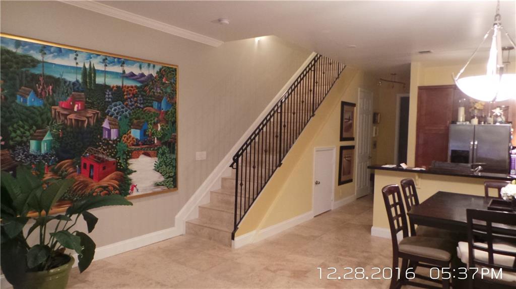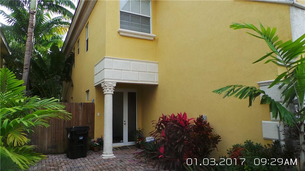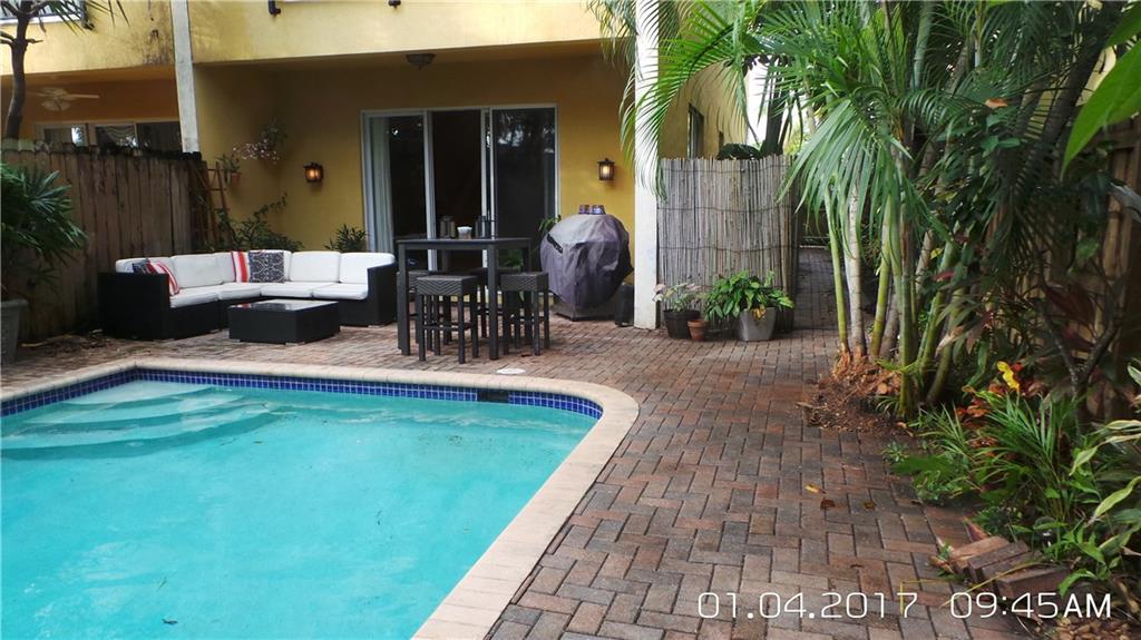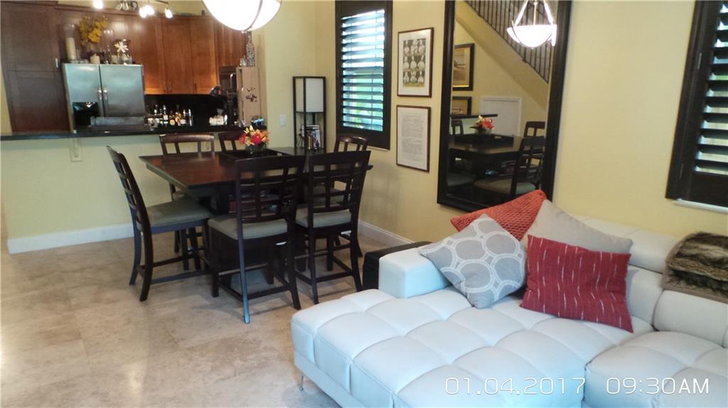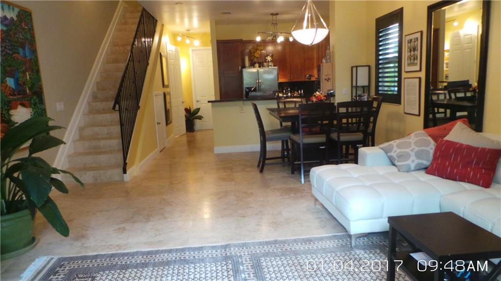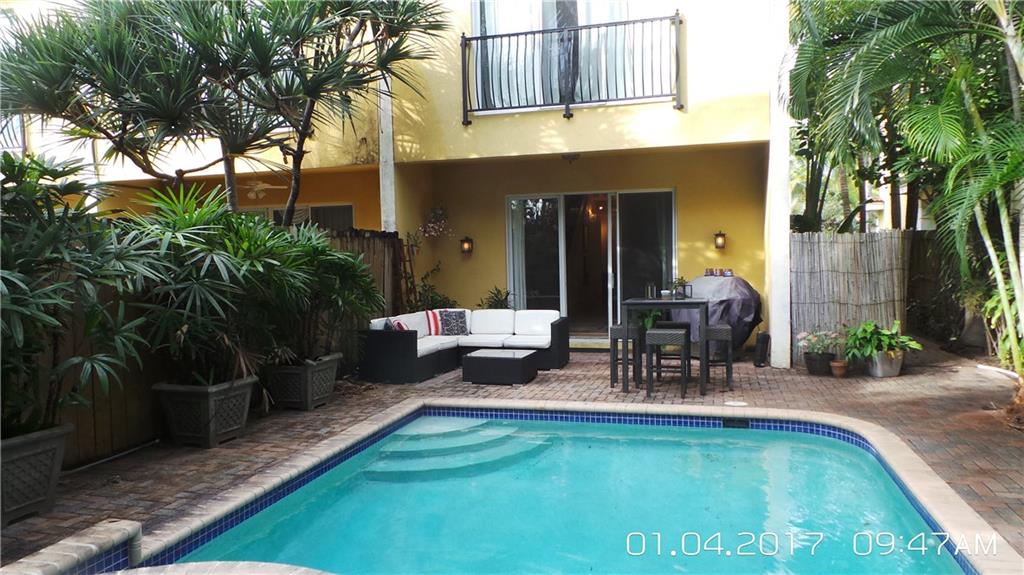 Stunning 3 bedroom two and a half bathroom fee simple townhome with a tropical pool and hot tub! The home features marble floors throughout living areas, carpet in bedrooms, a beautiful kitchen with granite counters and stainless steel appliances, impact windows/doors, tall interior doors, high ceilings. Living room overlooks the tropical fenced backyard with heated pool and hot tub. The upstairs master bedroom features a walk-in closet and spacious bathroom with dual sinks and separate tub/shower.