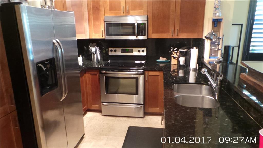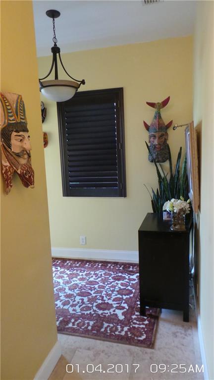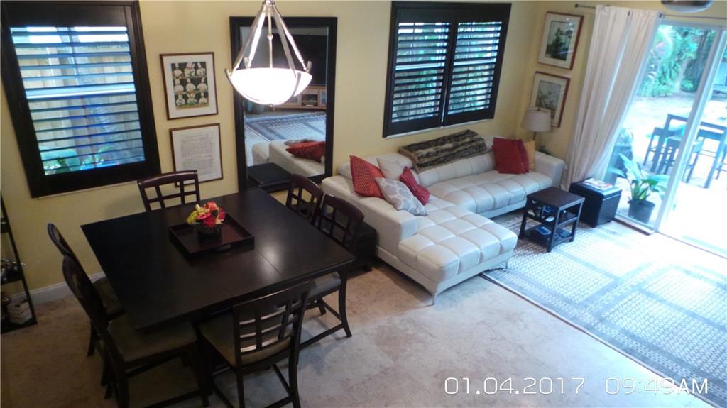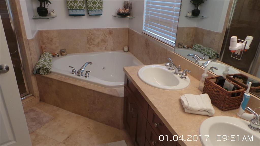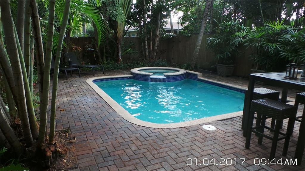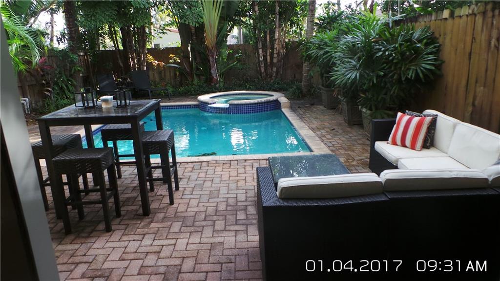 Stunning 3 bedroom two and a half bathroom fee simple townhome with a tropical pool and hot tub! The home features marble floors throughout living areas, carpet in bedrooms, a beautiful kitchen with granite counters and stainless steel appliances, impact windows/doors, tall interior doors, high ceilings. Living room overlooks the tropical fenced backyard with heated pool and hot tub. The upstairs master bedroom features a walk-in closet and spacious bathroom with dual sinks and separate tub/shower.