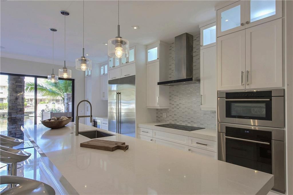Ready for Immediate Occupancy - New Construction - designer appointed two level waterfront home with 42' full service dockage right outside your door! Contemporary custom design using all highest quality finishes. Premium Sub Zero and Wolf stainless appliances, snow marble flooring, custom cabinetry and built-ins, sound design and LED lighting throughout with completed walk-in closets, luxury baths and 2 waterside terraces. Spacious 2-bay garage offers an electric auto outlet and additional storage space.