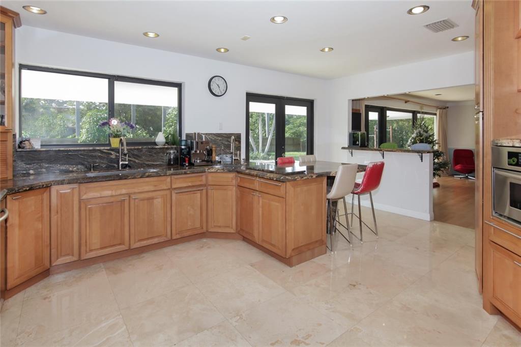 Rare 5 bed home on 3 lots across the street from the lake.Pool (wrapped by a coral stone patio), large private fenced yard,wonderful fruit trees.Impact windows & Saturnia marble floors throughout.Large living area w/ wet bar, eat-in open kitchen w/granite countertops and custom wood cabinets, S/S appliances.Grand master suite w/marble flooring and 2 large walk-in closets.Beautiful family room and formal dining area.Natural bamboo wood floors in 2nd, 3rd and 4th bedroom.New large shed for extra storage.