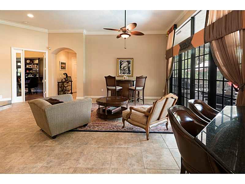 This luxury featured home sits on nearly one acre on a lush landscaped oasis. Magnificent lake views and newly refinished free form pool/hot tub. Extra large covered patio is great for entertaining. Large gourmet kitchen,state of the art security & surrou nd sound system. Over $200K in builder upgrades. All bedrooms with WIC. New AC. New paint interior/exterior. Impressive master retreat. Newly remodeled den & meticulously maintained. If you are looking for luxury in harmony with nature, this is your home.