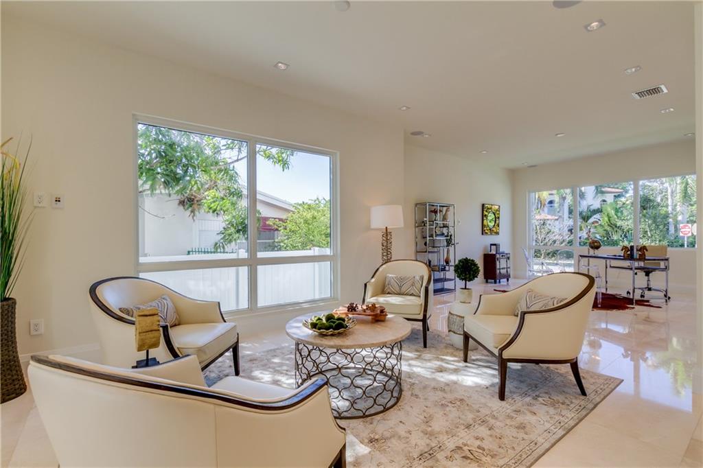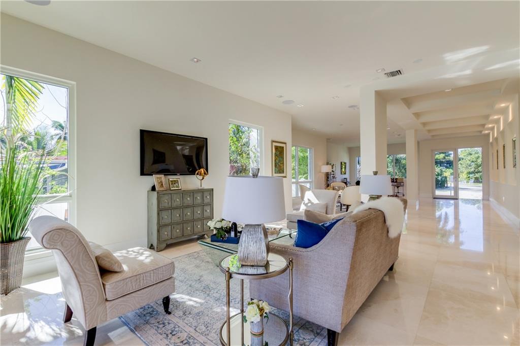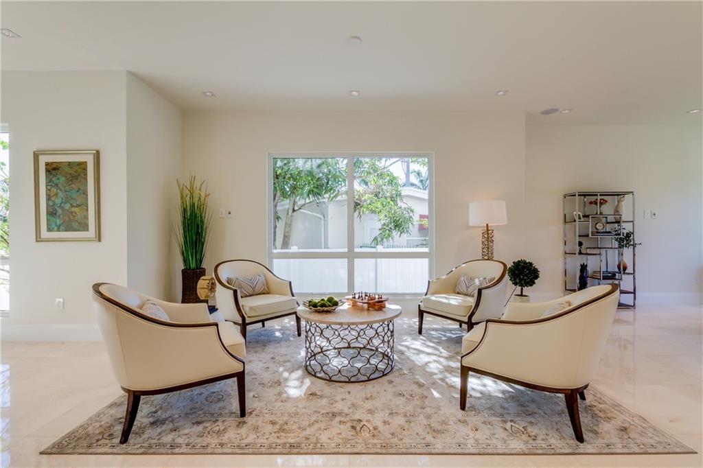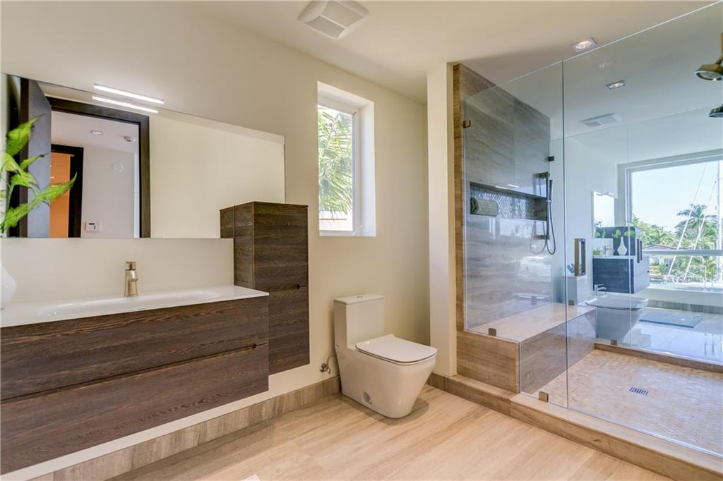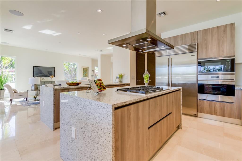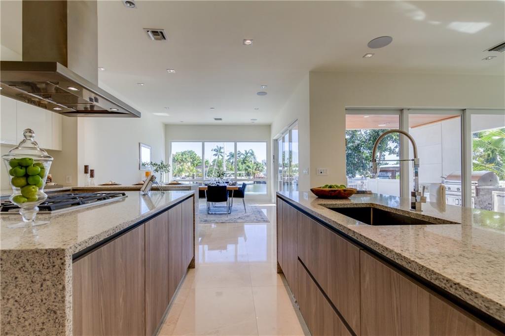 Sweeping water views greet you as you step into this spacious 4 bedroom, 5 1/2 bathroom modern residence with exquisite finishes. From the Mia Cucina designed kitchen complete with Wolf and Sub Zero appliances, to the French Vanilla marble flooring, no expense has been spared in this new residence in one of Fort Lauderdale’s most desirable neighborhoods. Dock your boat (+/-44 ft.) while entertaining guests by the pool’s summer kitchen. East Fort Lauderdale’s lowest priced SF waterfront new build.