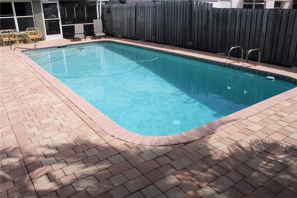 South Florida is calling you! Completely remodeled 3 bedroom, 2 bath pool home situated on a corner lot. Enjoy you days in the sun by the pool or rainy afternoons on the covered screened patio. On the rare cool evenings, you can sit by the fireplace in the family room. Decorated in light and bring colors for the true Florida feeling. This corner lot location offers extra parking on the paved side yard for a boat trailer or RV, just add a double gate for access. 3rd bedroom closet carries AC handler.