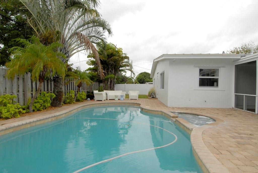 3 Bedroom/ 2 Bath home in Pompano Beach, remodeled kitchen with stainless steel appliances, Living room, Family room and master bedroom open to covered patio with pocket sliding doors. Crown molding, beautiful flooring, large bedrooms, fully fenced in backyard with pool & spa, 2 car garage w/ paver driveway. This home is a must see!! Sauna in Master bedroom not included.