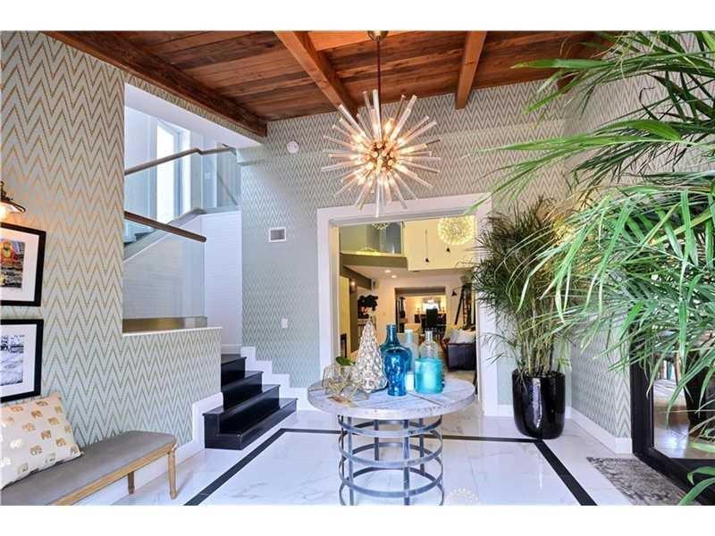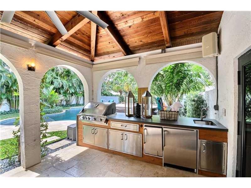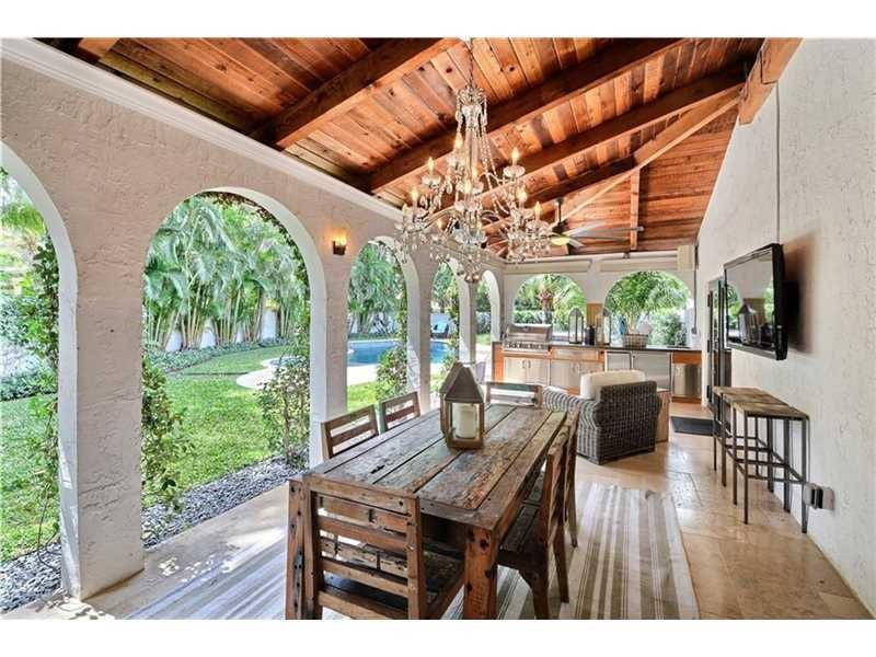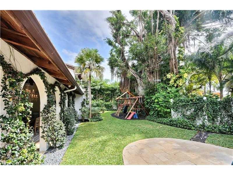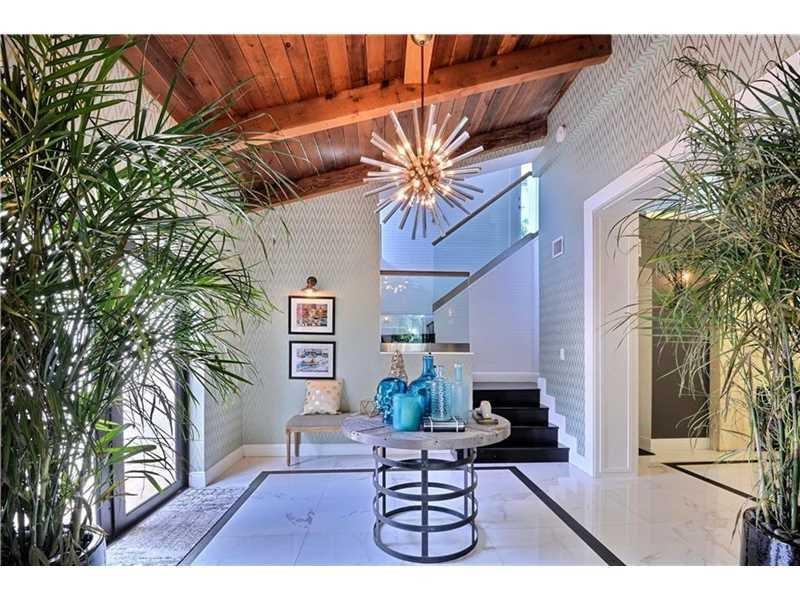 Exceptional updates, soaring ceilings, an open floor plan & outside entertainment area provide the WOW FACTOR, situated behind a walled compound comprised of 2 lots & lush tropical landscaping. An oversized covered loggia & full summer kitchen overlook the pool, water jets & hot tub. Formal foyer, living rm, gourmet kitchen opens to family rm & dining rm. Lavish master suite & bath with private roof top terrace. Impact windows & doors. Garage now a/c fitness flex room. Sq ft from BCPA believed accurate.