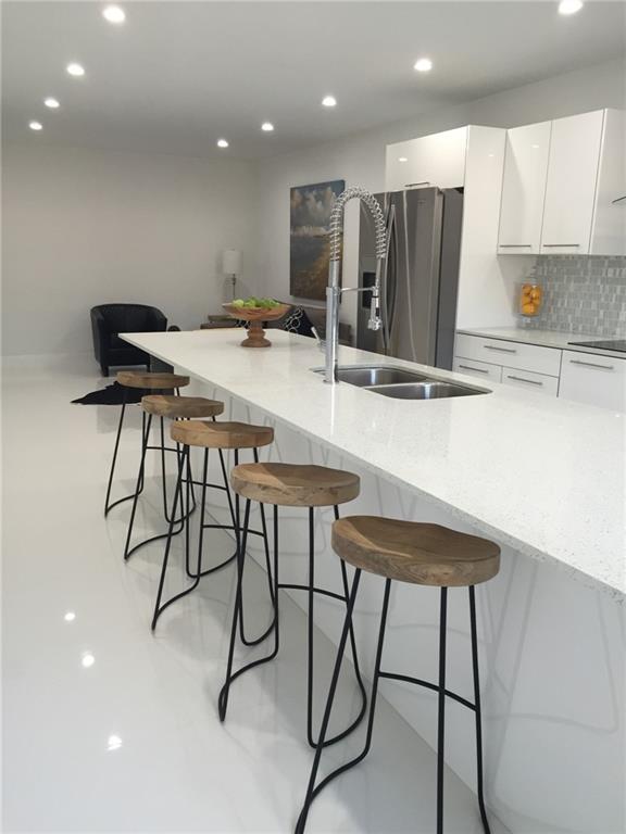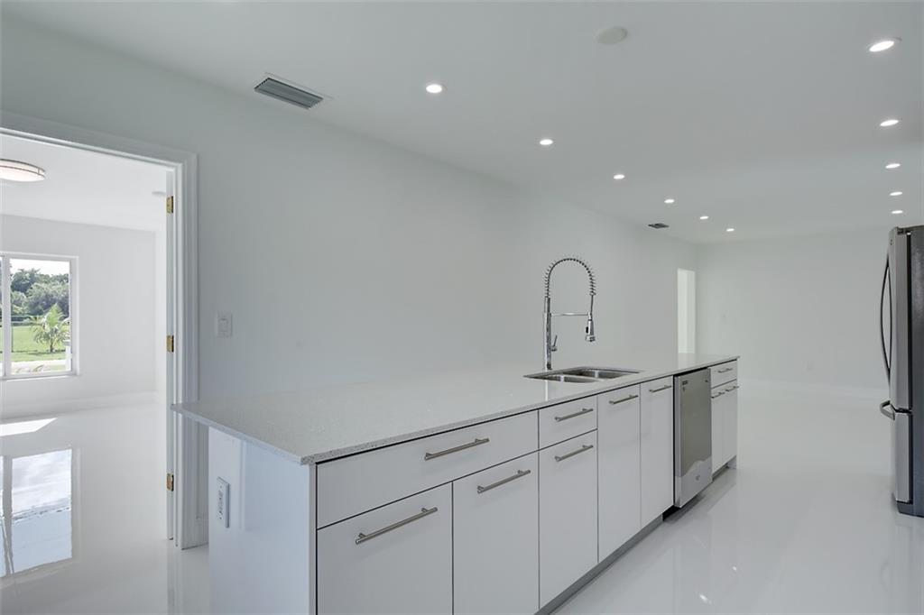 Contemporary Brilliance in Enchanted Lake. Lushly landscaped lot with free form pool and canal behind home. 4 Bedroom 3 Bath fully remodeled with Impact Windows and 2 Master Suites. 24x24 white porcelain tile floors, Marble bathrooms with Italian designe r Vanities and Bath fixtures. Stunning Oversized Gourmet Kitchen with Quartz Countertops. Huge Master Suite with luxurious bath and custom Master closet. Oversized Bedrooms, Circular driveway with Sculptured stone in front and back. Very Quiet street!