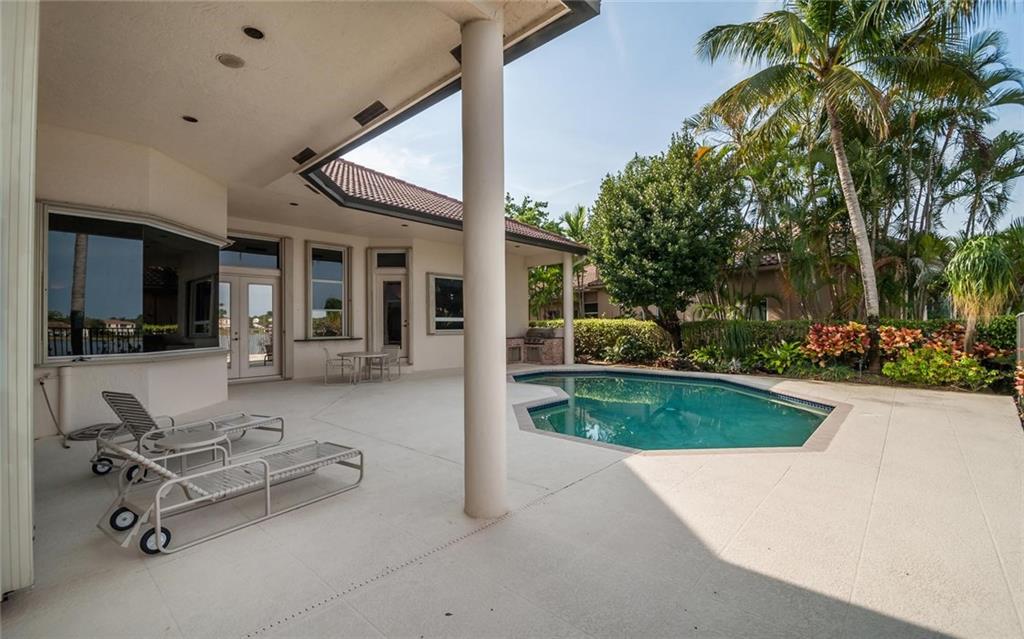 One of a kind elegant waterfront home in Maple Island. Custom 5/4.5 plus office with marble floors, crown moldings, high ceilings & more. Living & Dining Rm are spacious with serene water views and full bar to make all family gatherings special. Kitchen with granite, center island, gas, & updated appliances. Master Bath updated. Endless Waterviews from Master Bedroom. Large Secondary bedrooms. Chicago Brick circular driveway. Accordion hurricane shutters. Fenced. Gated community. A schools. Walk to park.