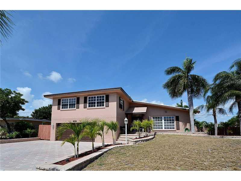 Awesome East Fort Lauderdale location! One of the largest "as built" homes in Imperial Point. Super cool "split level" home with a downstairs family room w/ full bath and wetbar and the upstairs offers 4 bedrooms and a loft/2nd family room. Main level off ers the "Wow" factor with vaulted ceilings in the Living and Dining rooms, huge eat in kitchen, big corner lot, great backyard with tons of pavers. You will love the design and floorplan of this house. Very hard to find this kind of square footage.