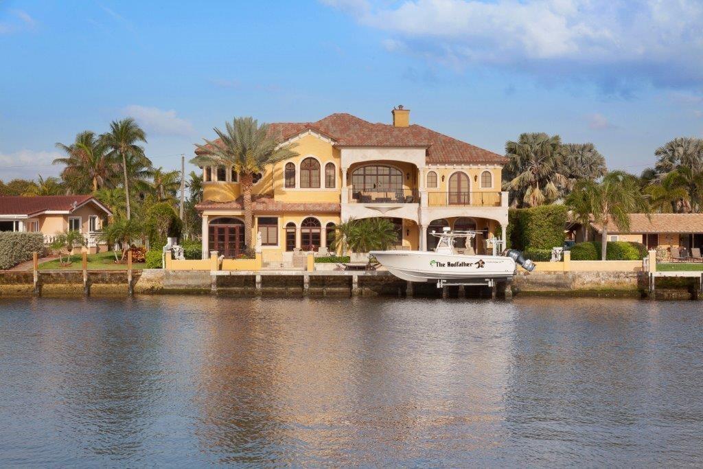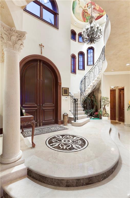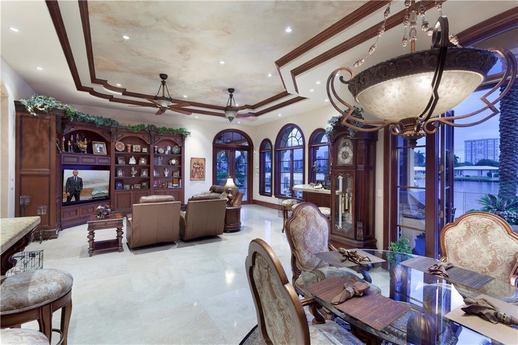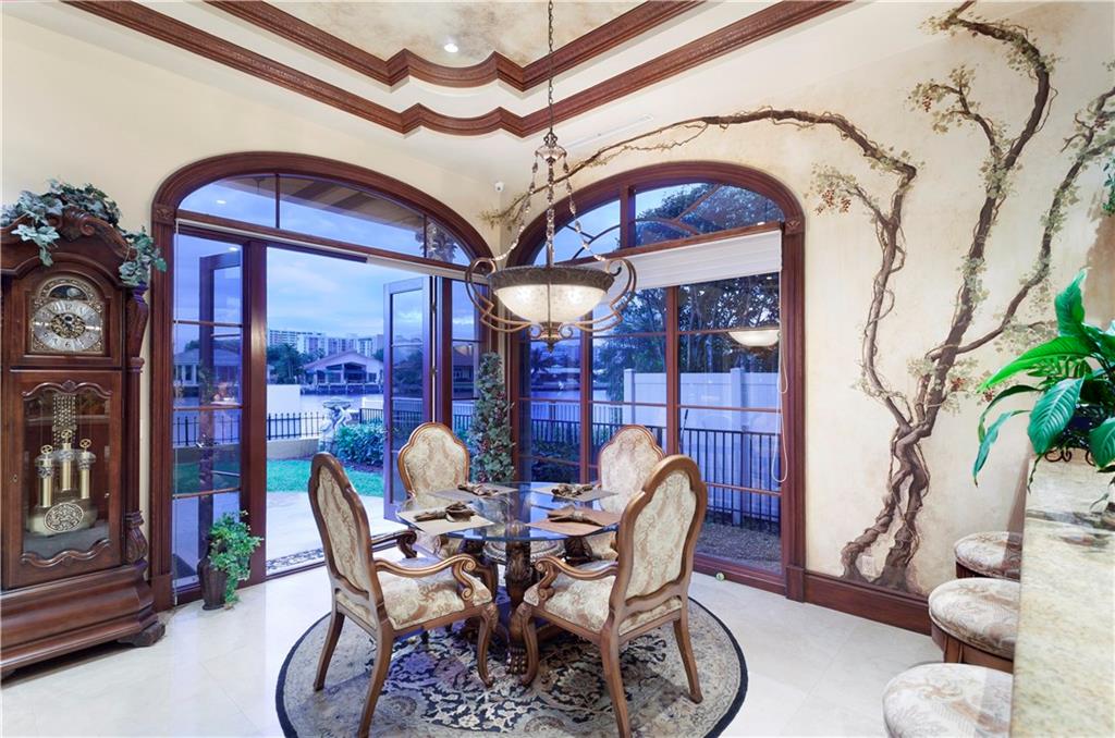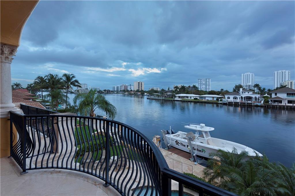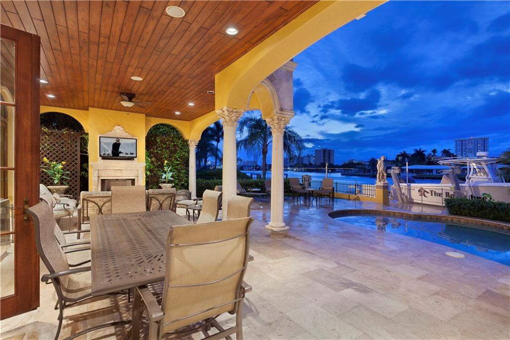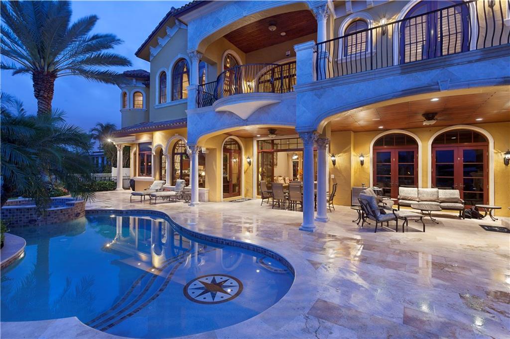 Giving the feel of a Mediterranean resort villa, this trophy Intracoastal estate is an impressive showplace for indoor/outdoor entertaining and features a resort-style pool patio and yacht dock with lift. By the majestic turret staircase, the foyer enters the stunning 2-story living room with palatial fireplace and window wall opening to the waterside loggia with fireplace. Media room. Sumptuous master suite sprawls over half the upper level and opens to a loggia with expansive waterway view.
