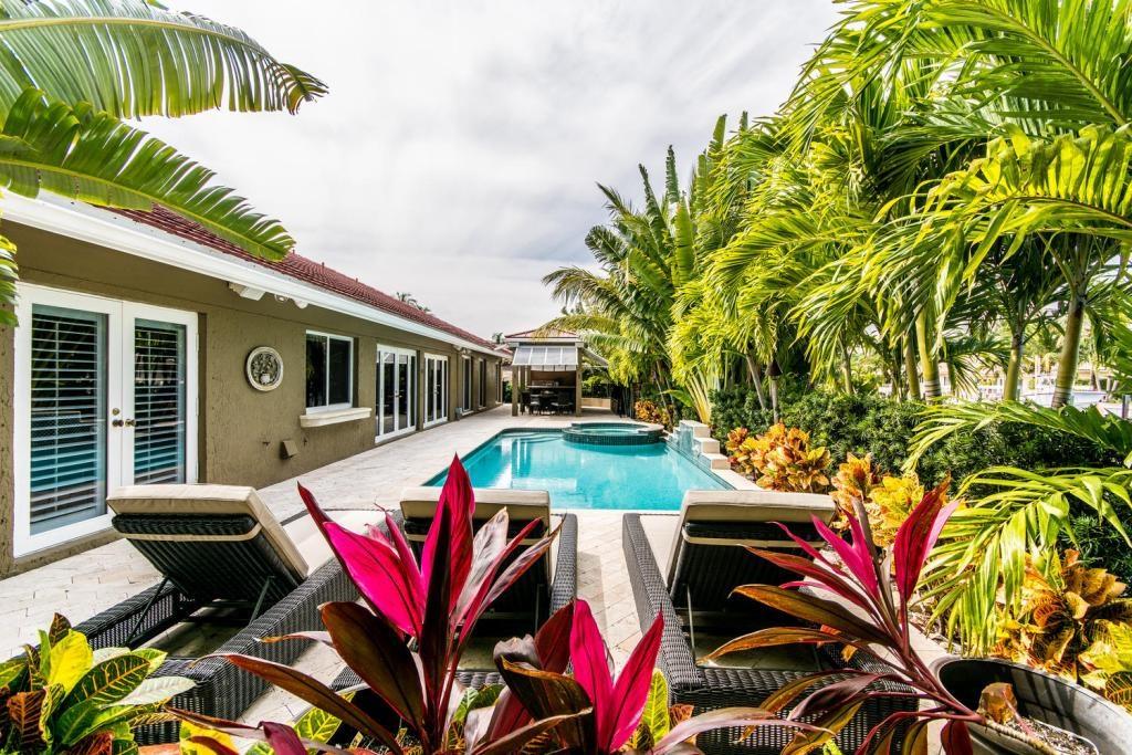 Enjoy an extraordinary indoor/outdoor tropical entertainment lifestyle with this exquisitely remodeled 4 bd/3.5 ba/2 car garage home with wide deep water/no fixed bridges, upgrades include remodeled kitchen and bathrooms, impact windows and doors/accordi on shutters, marble/wood flooring, wet bar, newly painted exterior/roof, lushly landscaped tropical exterior, heated saltwater pool/Jacuzzi, covered outdoor kitchen with int/ext surround sound speakers, whole house generator, camera wired, and more.