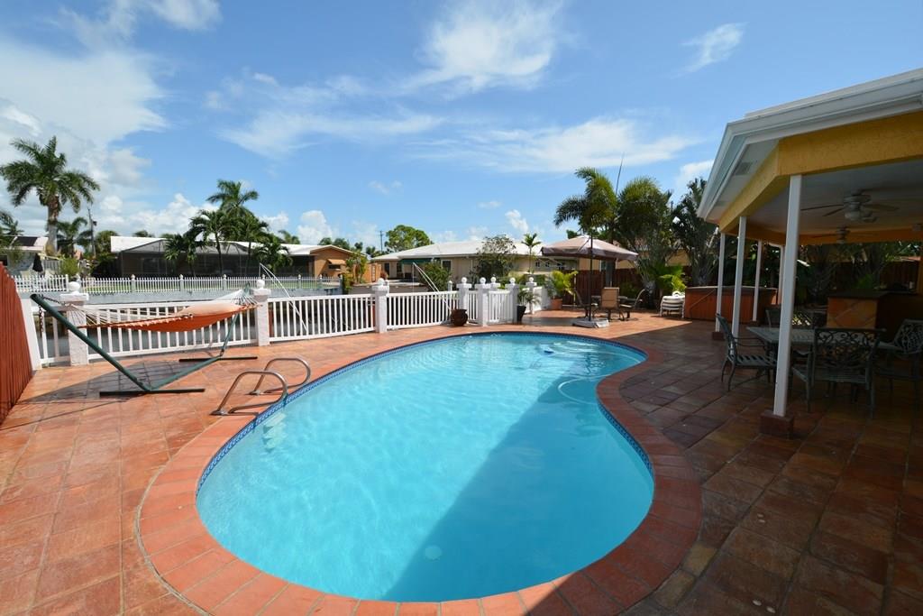 Great property! Ocean access waterfront, dock, LARGE open, remodeled kitchen, remodeled baths, ALL IMPACT windows/doors, plantation shutters, ceramic title floors and patio, pool, spa, 2 cg, large side yard, quiet culdesac street, great curb appeal, circular driveway! Freshly painted inside!