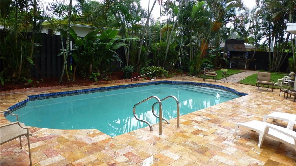 Beautifully updated & ready for move in. Nice outdoor area with Lanai for entertaining & recreation. New dark wood floors in the Living Room & all of the bedrooms. Mexican tile in the Dining Area, Kitchen, Family Room & Hallways. Stainless & Granite in the open kitchen. Washer & Dryer in the 1 car garage. Travertine tile pool deck. New Roof, AC & Water Heater, upgraded Electric & Hi-hats. Freshly painted in & out, Circular drive, Corner lot, Fully fenced back yard, New Diamond Brite & Termite Warranty.