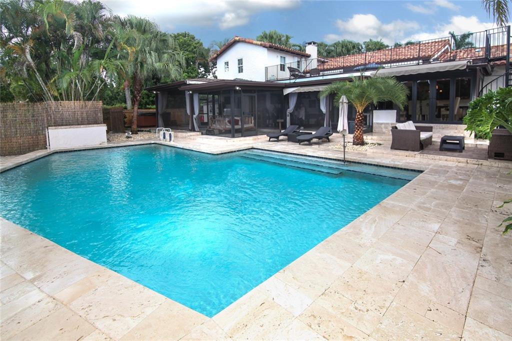 Highly sought after Grove Estates. This magnificent home has been completely redone from top to bottom. Features include 4 bedrooms plus a den / 4.5 baths, marble throughout social areas, wood floors in bedrooms, granite and stainless appliances in kitchen. The backyard is a tropical oasis with an inviting pool that is surrounded by 2400 sq. ft. of travertine marble. All of this on a builder's acre. This is a must see that won't last.