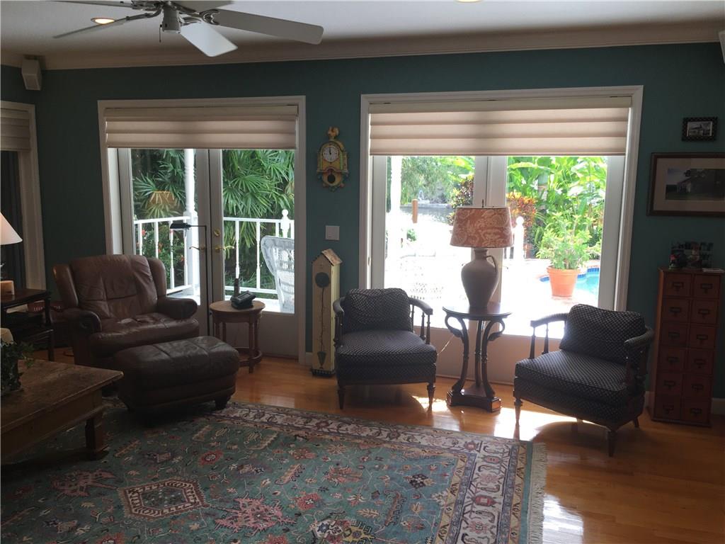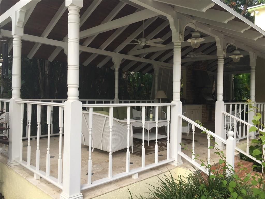 Authentic Key West styling offers the perfect tropical deepwater retreat! Covered porches & an oversized loggia creates an outdoor living/dining room with Summer Kitchen. Expansive rooms & extremely open water facing chef's kitchen (Subzero & Viking) adjoins family room. Living room with red oak floors & fireplace, Plantation shutters add island ambiance. One Bedroom Suite on first level (great guest/in-law)& 2 spacious water facing Master Suites upstairs. Lush established landscaping for total privacy!