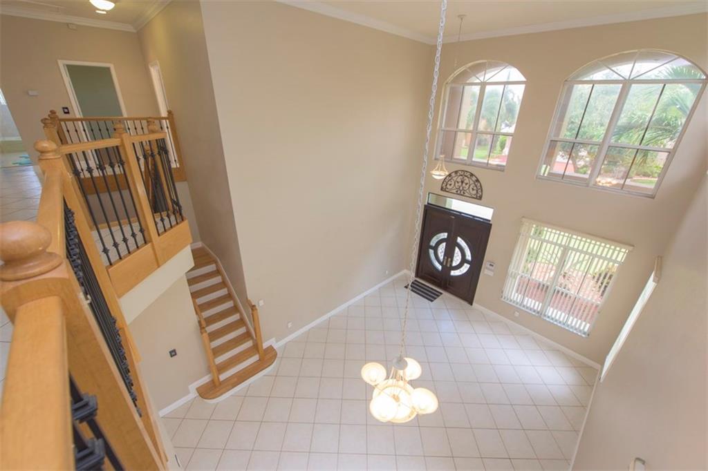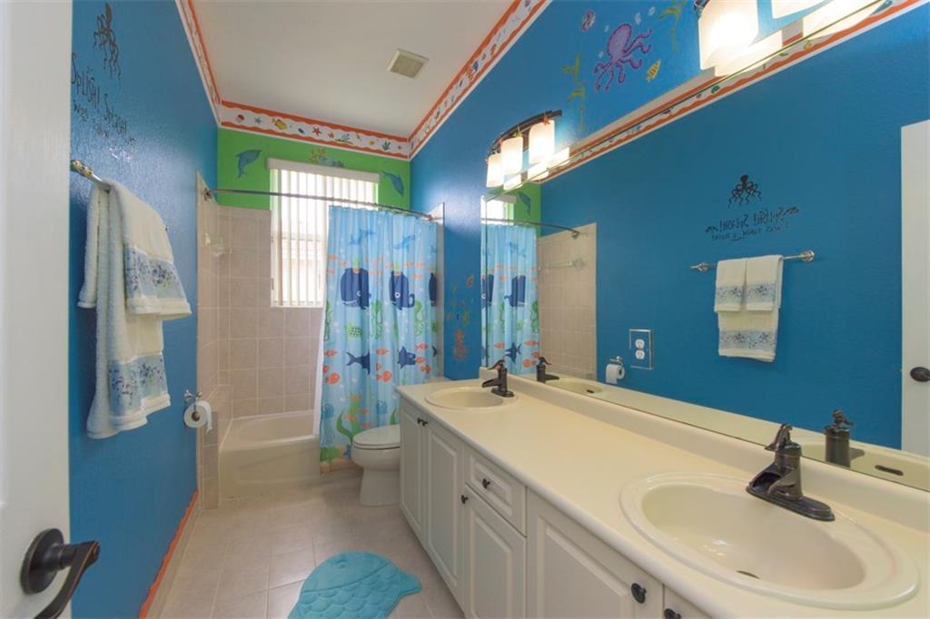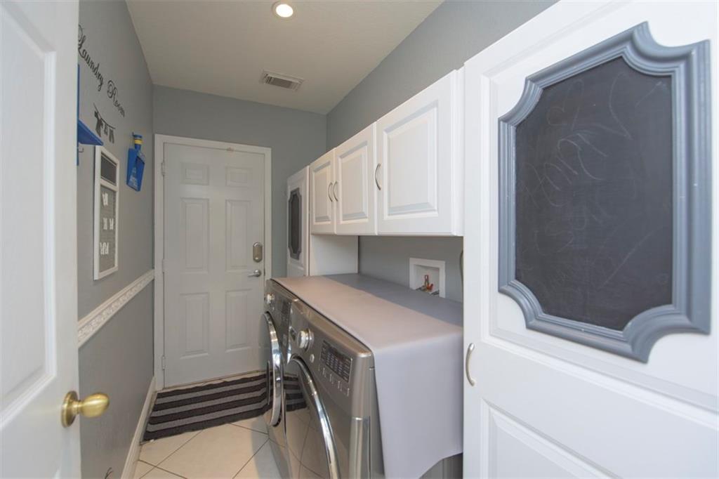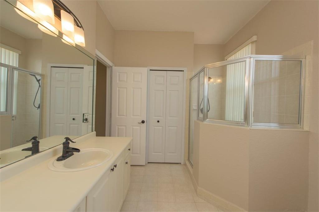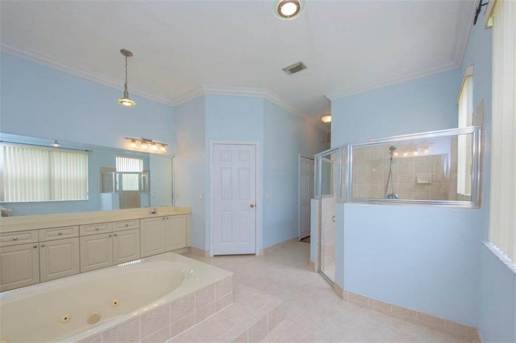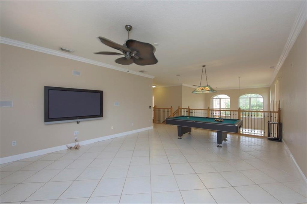Spectacularly upgraded 2 story home with remodeled kitchen featuring granite, stainless appliances & gorgeous wood cabinets. Spacious master bedroom (1st floor) has 2 walk-in custom cabinet closets. Master bath has dual sinks, bidet & Jacuzzi tub. Huge loft-playroom. Heated pool with salt system & spa has wireless remote control. Hurricane shutters- all accordion upstairs. Tile & wood flooring. Fenced yard with covered patio has a view of the lake. 2 AC's (1 replaced 2014). Gated Community close to I-75.