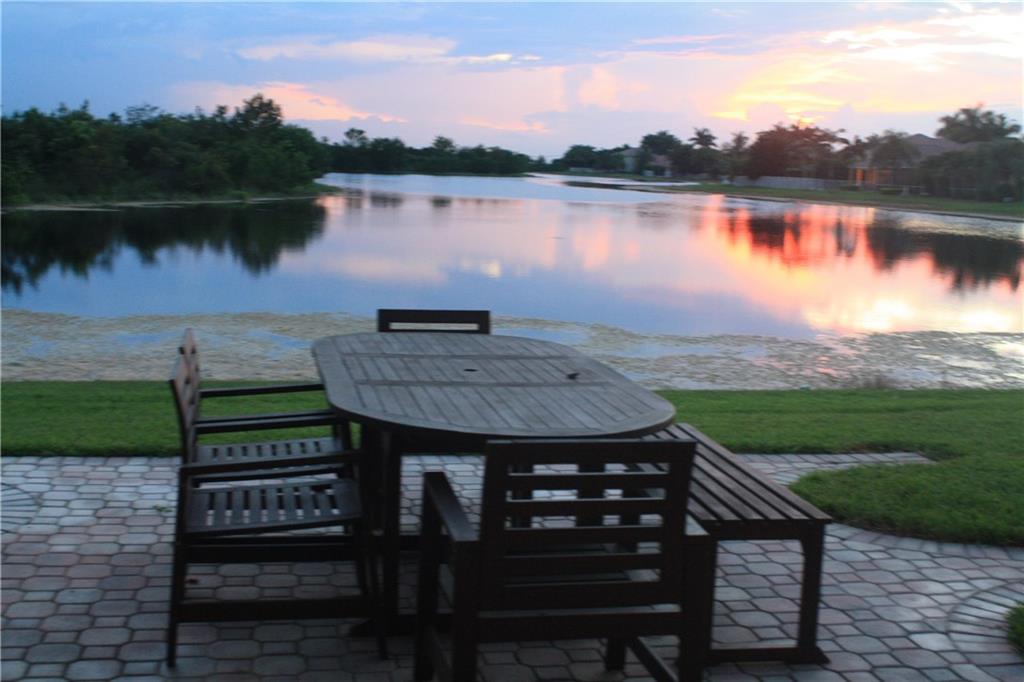 Spectacular oversized lakefront with the best sunset views, wide expanse of water overlooking a nature preserve, Home located in a cul de sac lot , Two story house, 4 bedroom 2.5 bathrooms, French doors , extended patio with brick pavers. Great amenities, lap pool, kid pool with a slide, mini golf, soccer field, and basketball court.