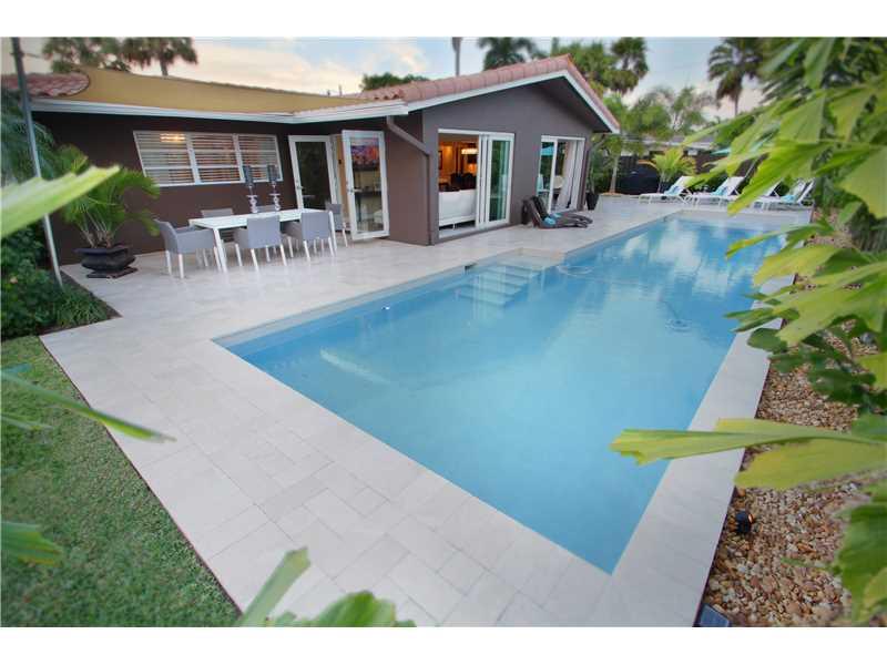 Exquisite Resort-Like Contemporary 3 bed/2.5 bath on a large CORNER lot in prestigious Coral Ridge Country Club. Embodies warmth & glamour simultaneously! Gorgeous NEW 50' long heated salt water pool, incredible kitchen, restored terrazzo flooring and a large 2-car garage. Amazing master suite w/walk-in closet & fabulously renovated bath. Unique features inc. private office,state of the art audio system, voice controlled lighting and power draperies. A Truly stunning home that must be seen. Won't last!