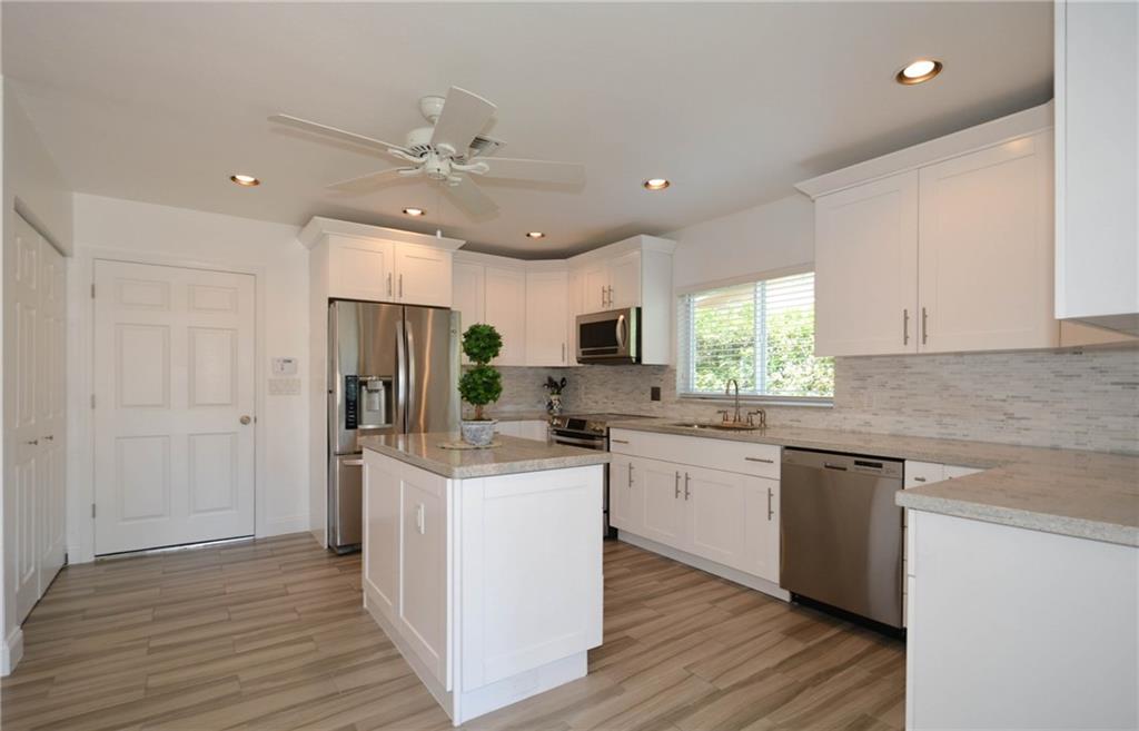 Newly updated 3 bedroom, 2 bath waterfront home. Ocean access, 2 car garage, open living space, gorgeous new kitchen w/stainless appliances and island, new master bath, updated guest bath, new tile in living area, new AC, impact windows and doors (including the garage), new paver patio in the back, popcorn ceilings removed, smoother walls, new alarm system with security cameras, recessed lighting, new sprinkler system. Wonderful neighborhood. Room for a pool. One-Year Home Warranty. EASY TO SHOW!