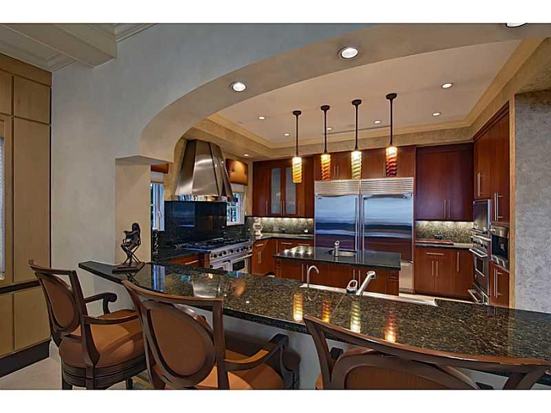 Exquisitely detailed custom residence on 150 ft wide water way. This residence has all the luxury amenities: Formal living room fireplace & wine room,wet bar, gourmet kitchen open to family room,elegant dining room,media room, separate guest/M-I-L quarter s, VIP guest suite downstairs. Second level master with private sitting room/office with fireplace,his/her bathrooms & huge dressing room, two bedrooms (one currently gym). Beautifully terraced pool area, summer kitchen, outdoor fireplace & mosaic pool.