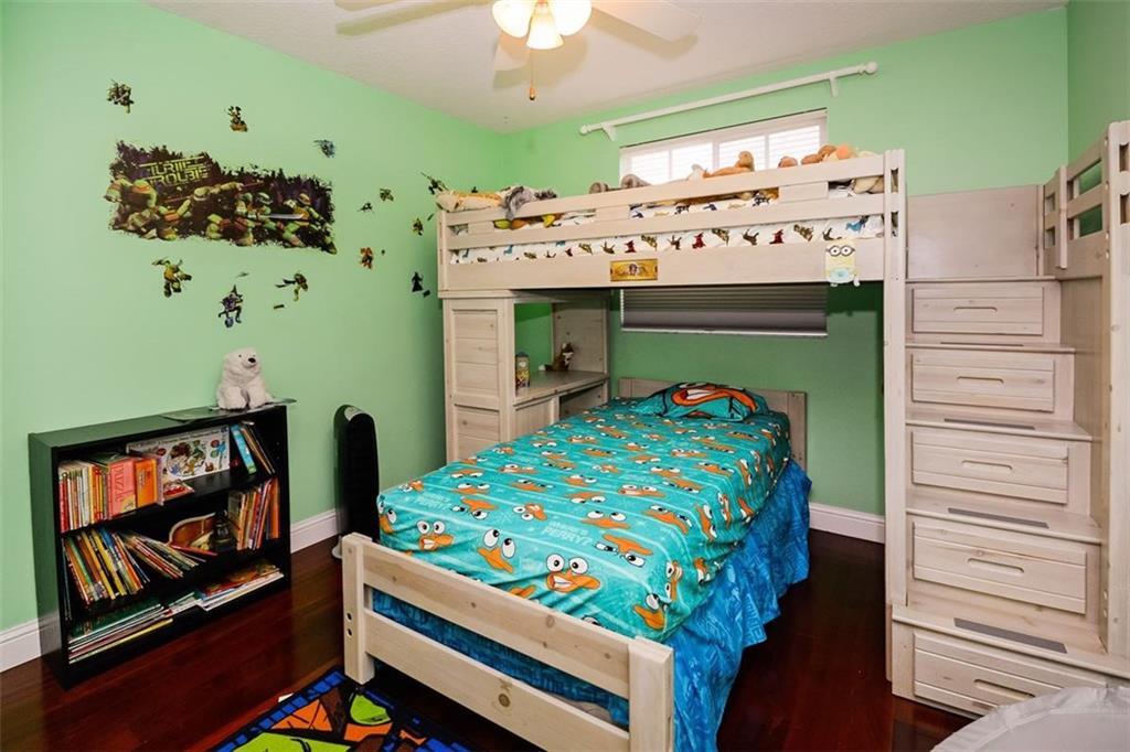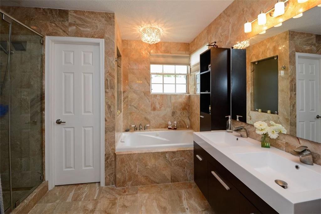 Welcome Home! Gorgeous, remodeled with high-end finishes & addition. MARBLE & WOOD floors. Dark Cherry Kitchen cabinets, stainless appliances, double size refrigerator/freezer. Granite counters, marble back splash. Impact Windows, Accordion Shutters. 250 sq ft addition to family rm. Digital A/C. All bedrooms upstairs. Luxurious Italian Marble Master Bath. Closet cabinetry. Security Cameras. French Doors. Fenced Yard. Gated community, walk to elementary school. Community pool. Come see today!