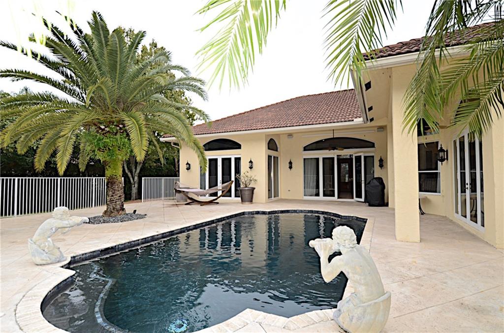 Gated Acreage Community - Private back yard backs to wooded protected land - huge patio & pool area - Circular Chicago Brick drive with walkway to back yard. - Beautiful curbside appeal - Custom wood door entry - front of house has IVY accents - Huge fami ly and living rooms - - Kitchen features stainless appliances - double wall oven - granite counters - wine cooler - s/side refrigerator - Pantry . 3-way split bedroom plan plust 5th room/office - Master bedrooms overlooks pool - dual walk in closets