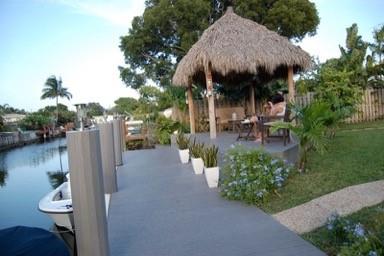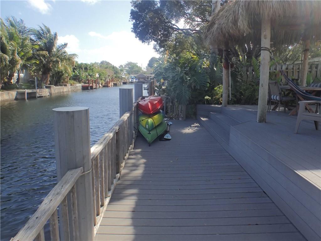 Boaters Dream! Waterfront property with 50 foot boat dock and ocean access. Beautiful 3/2 home with a den that can be used as a 4th bedroom. Above ground pool with a large covered patio and separate deck with an amazing tiki hut, great for entertaining. Hurricane impact windows throughout. Kitchen has SS appliances. Tile floors in the kitchen & dining room. Wood floors throughout the living area,2nd & 3ed bedrooms. Terazzo floors in the master bedroom. Remodeled master bath. See brokers remarks.