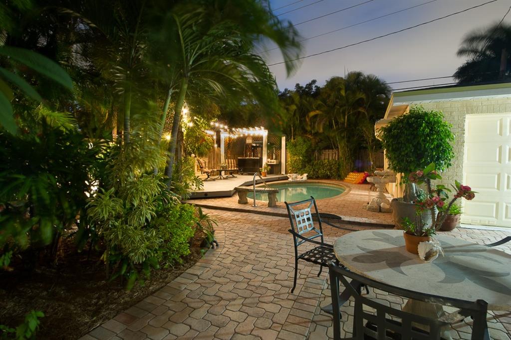 Privacy abounds! Mature Palm Beach hedges compliment the entry of this charming resort styled three bedroom, two bath pool home with one car garage. Split floor plan with added master and family room to the original home. Renovations completed and ready for you to enjoy what the eastside of Fort Lauderdale has to offer. Close to downtown, beach and the Marina Mile yachting capital of south Florida. Room for your vehicle, boat and trailer behind the fully fenced enclave.