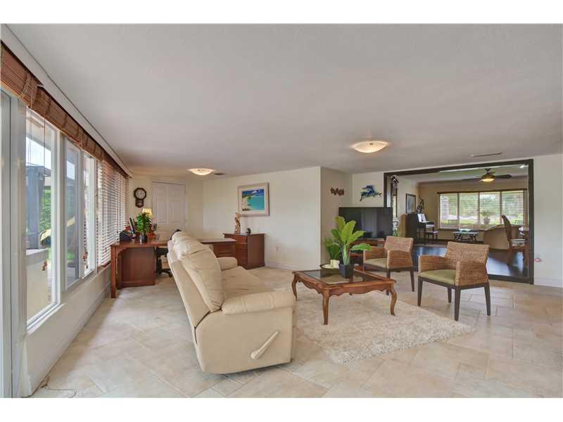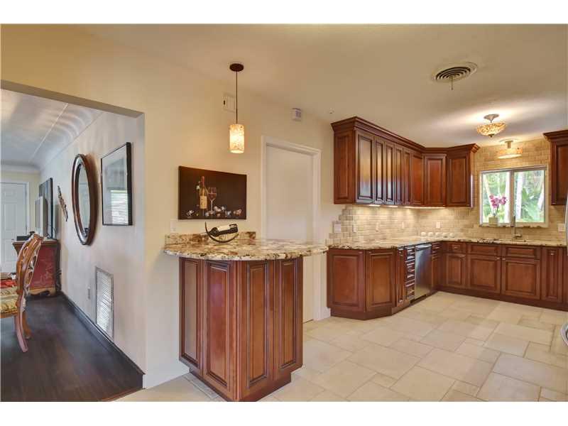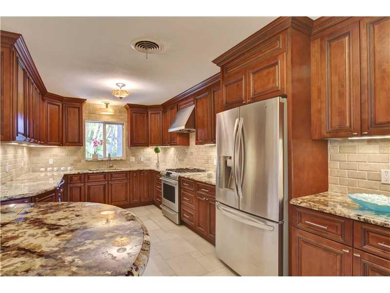 Located in sought after Garden Isles Location, this waterfront home has been beautifully remodeled, featuring chef's kitchen, with Italian granite and custom built cabinets, top of the line appliances, top quality cabinetry/counters/custom installation for (w breakfast/serving bar) incl. duel-fuel 2 oven electric/gas drop in range, counter depth French design refrigerator, ceiling to floor renovations! Solar hot water heater, outdoor kitchen, impact resistant windows and doors, tropical landscaping.