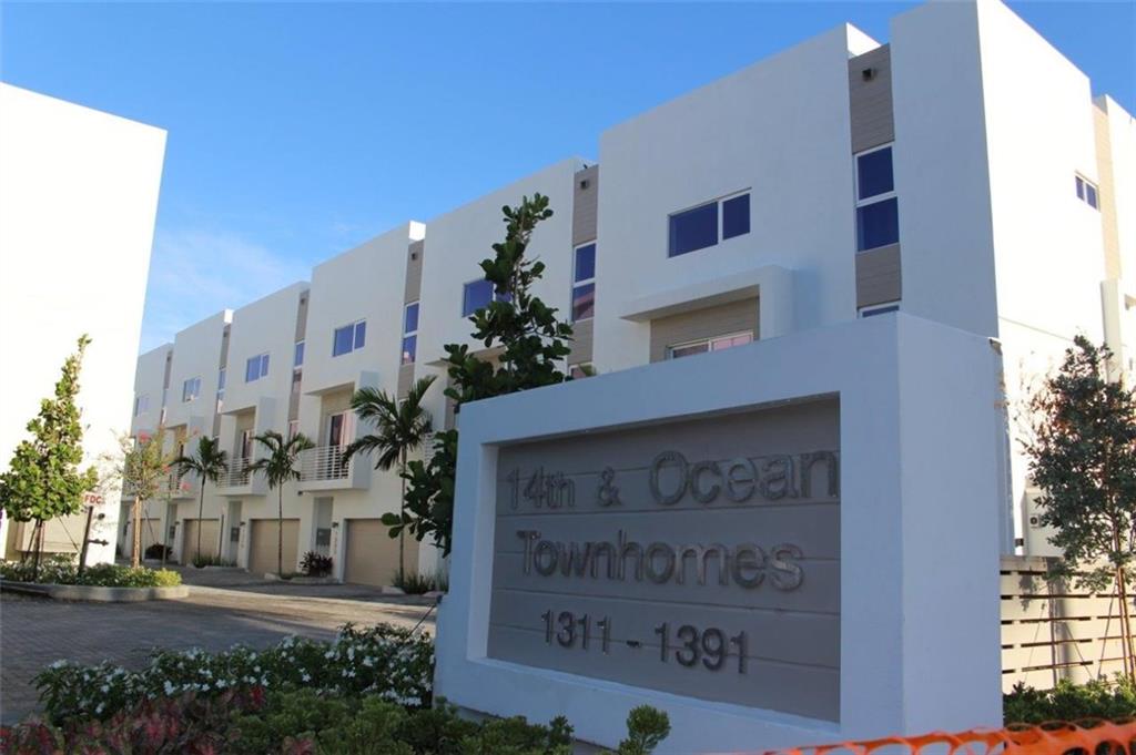 14th & Ocean consists of 21 brand new, fee simple luxury, townhouses directly across the dtreet from the Atlantic Ocean. Features a 3 bedroom,31/2 bath,2 car garage and 2 balconies. Chic,comtemporary design,large open luxury kitchen with stainless appliances,designer cabinetry,private backyard and hurrican impact glass windows, Unit has an upgrade package that includes 24x24 porcelain tile throughout the proerty, white quartz counter-tops, full bacl splash and much more! Photos depict furnished model unit