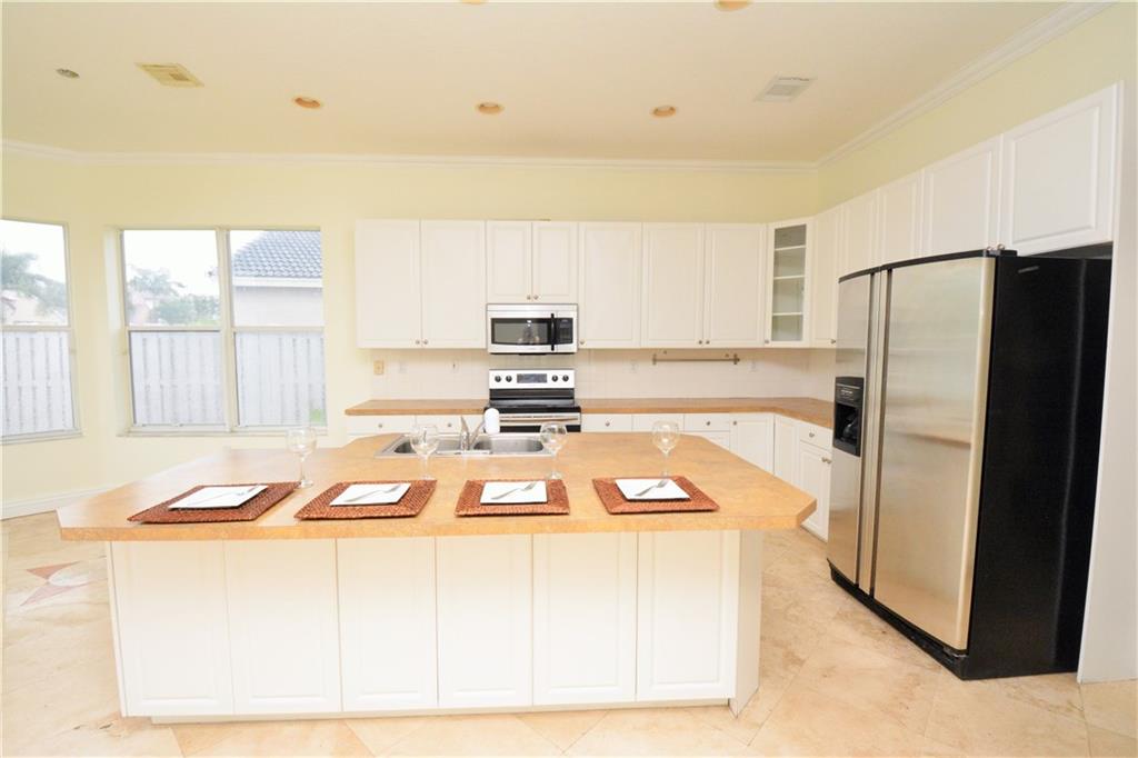 BEAUTIFUL 2-STORY HOME IN THE RESORT-STYLE COMMUNITY OF SUNSET LAKES. LOWER LEVEL FEATURES TRAVERTINE FLOORS WITH BEAUTIFUL MARBLE INLAYS. UPPER LEVEL IS ALL NEW WOOD FLOORS. KITCHEN IS EXPANSIVE WITH LARGE EAT AT ISLAND, STAINLESS STEEL APPLIANCES, HUGE PANTRY AND BREAKFAST AREA. OVERSIZED LOT HAS 2 PATIOS, PRIVACY FENCE AND PLENTY OF ROOM FOR A POOL.