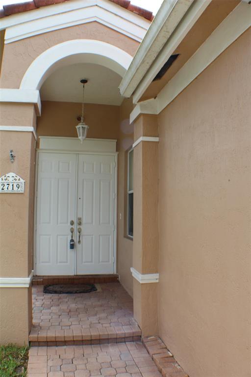 Lake front, one-story 4 bedrooms, 2.5 bathrooms, 2 car garage detached single home. Tiles on common areas, wood floors on all bedrooms. Strong cinder block construction, roof with S shape concrete tiles, covered screened patio. Located in the desired gated community of Melrose Landing at Monarch Lakes in West Miramar. Perfect place to raise a family. This home is close to highways, restaurants, malls, entertainment, universities. Easy to see today. What are you waiting for?