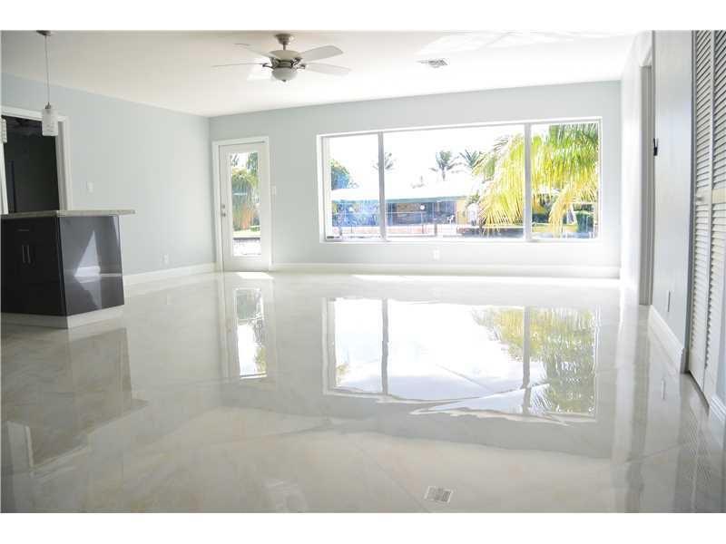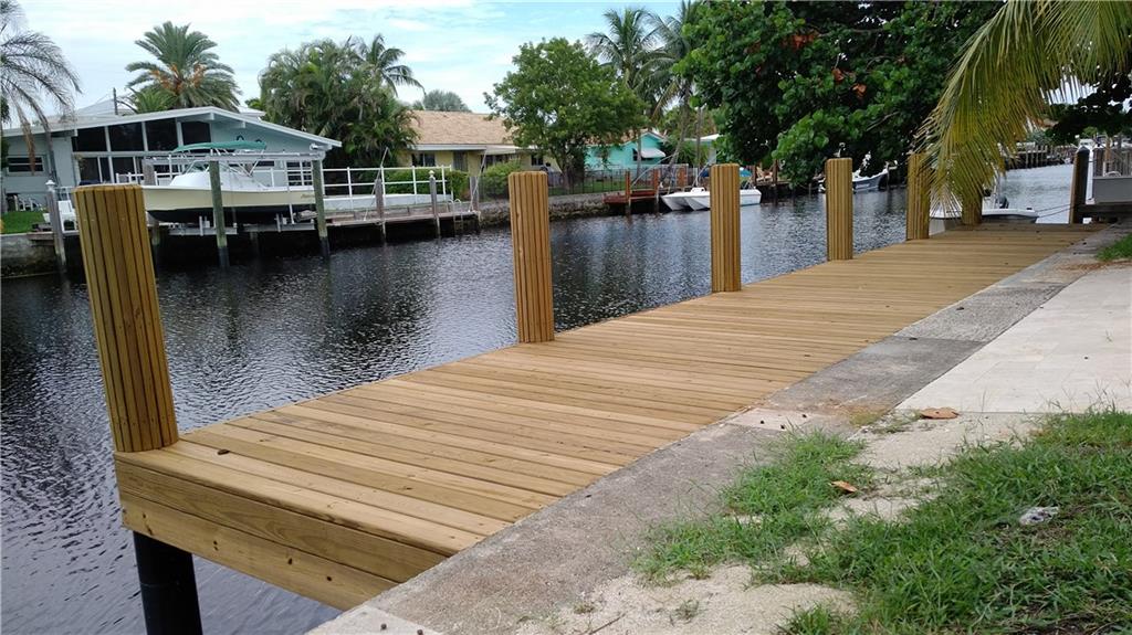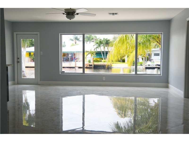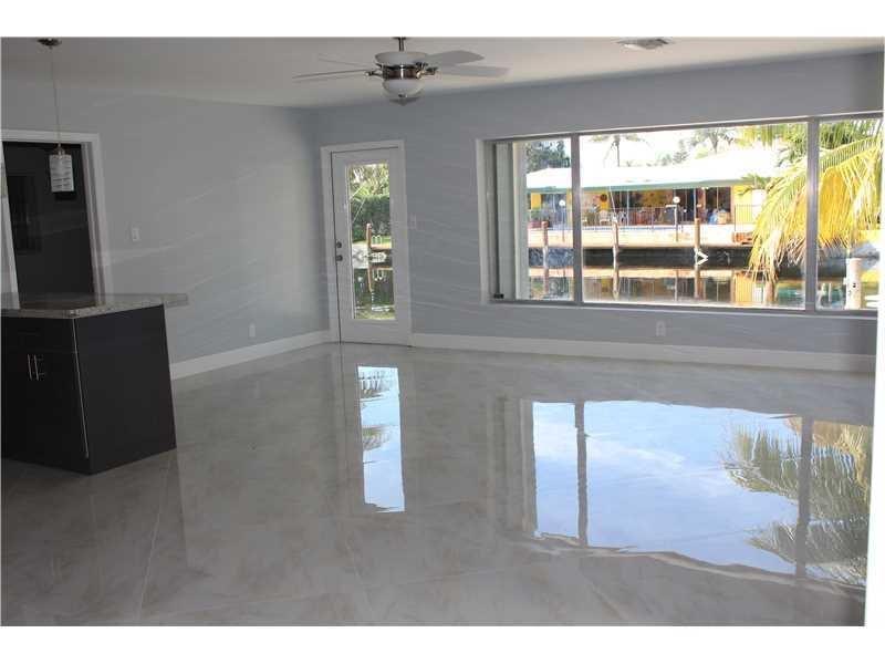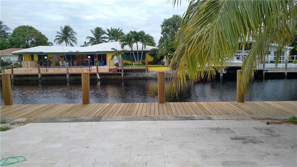 Waterfront property!! Magnificent modern house in immaculate turnkey condition.Direct ocean access with only one fixed bridge at Federal Hwy.Brand new roof.Gorgeous 32" porcelain tile floors throughout. 4 bedrooms, 4 full bathrooms, this home features 2,257 sq/feet under air, open concept, natural light, family room and dining area overlooking the canal, exquisite custom-made Italian kitchen, master suite with bathtub/ shower New wood 50X7 ft boat dock clearance of fixed bridge is 12.1ft Fenced backyard