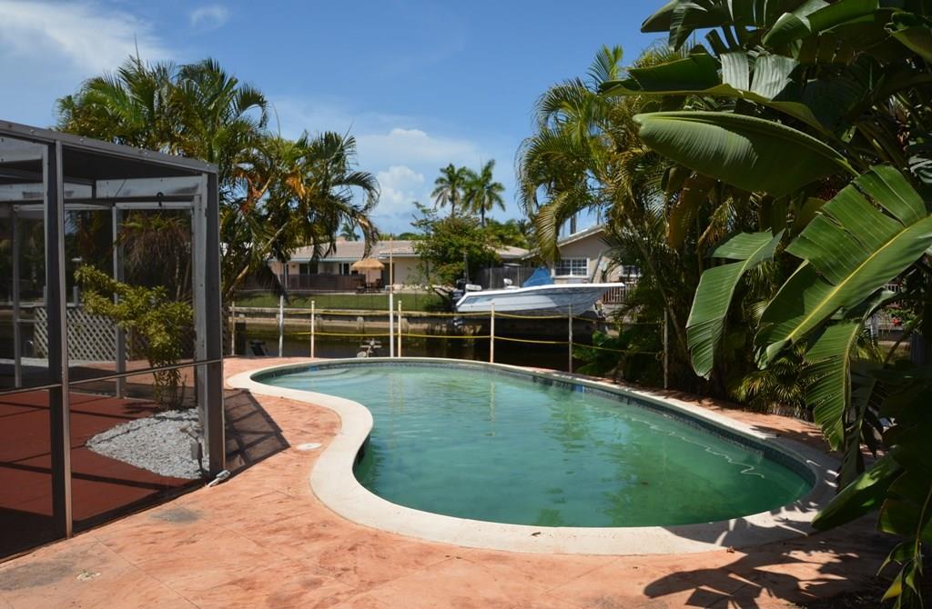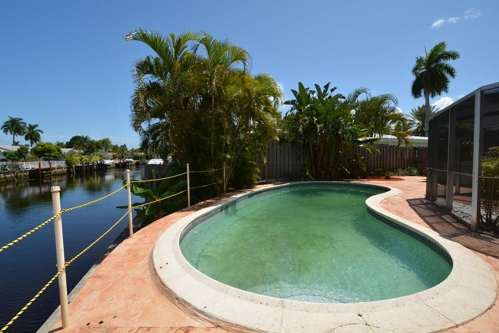 3 bedroom 2 bath home in highly desirable Coral Ridge Isles on the water! This property offers a large screened in patio that is perfect for relaxing or enjoying it with friends and neighbors. Float in the 12X15 pool and look out at the canal. The dock offers a boat lift and dock for your boat. With over 2000 sqft of living space protected with impact windows. The 3 bedrooms are of good size with plenty of closet space. Tile floor in updated kitchen and main living area, bedrooms wood laminate floor.