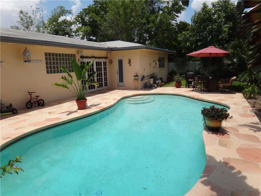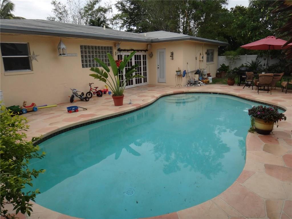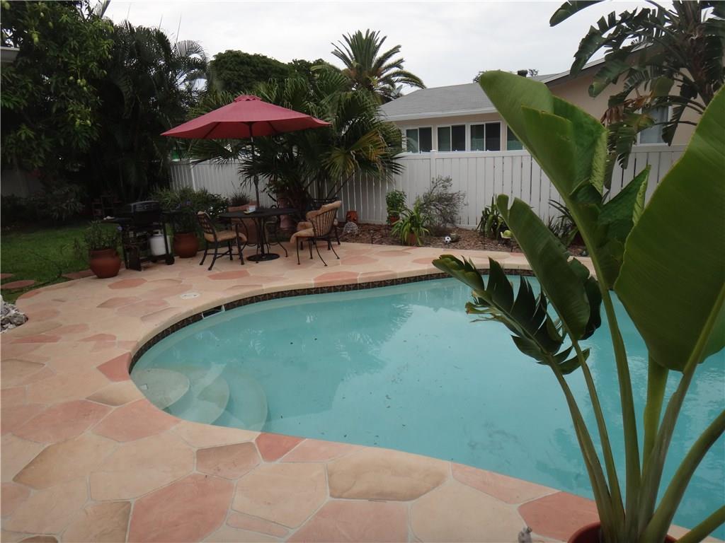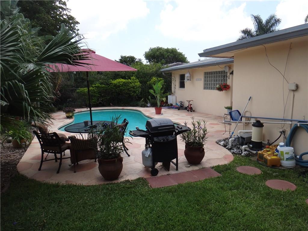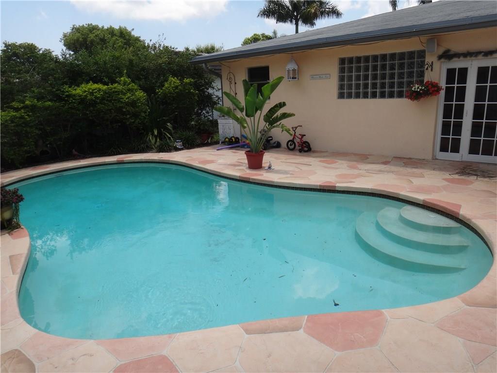 Lovely upgraded home in the well maintained, family neighborhood of Palm-Aire Village. 3 bedrooms and a den, 2 baths, 1 car garage. Completely fenced-in back yard has pool, large patio area, and you still have plenty of grassy area for your kids and pets to run and play! Open and spacious kitchen has granite counters, stainless appliances and modern hardwood cabinets. Large master bedroom has very large walk-in closet, a dream! Split floor plan with cabana bath. Easy access to 95 & turnpike.