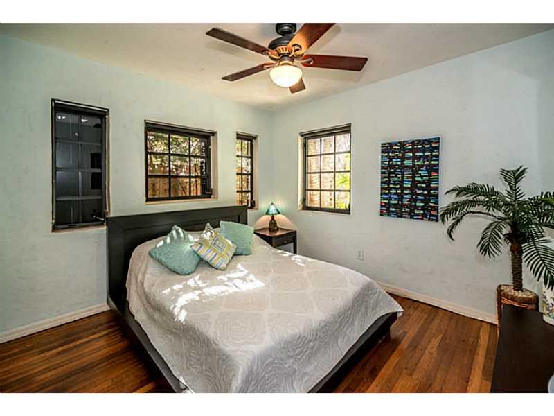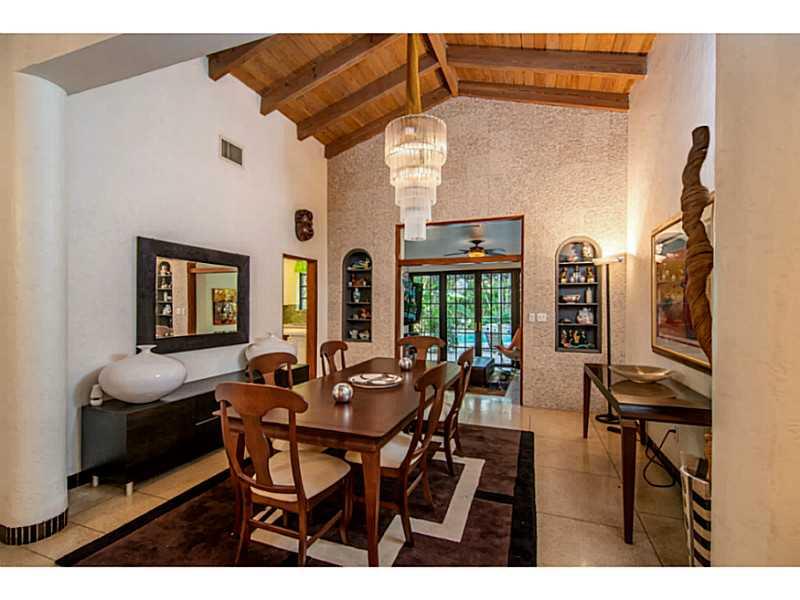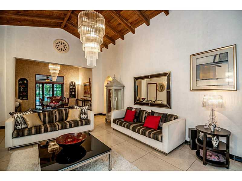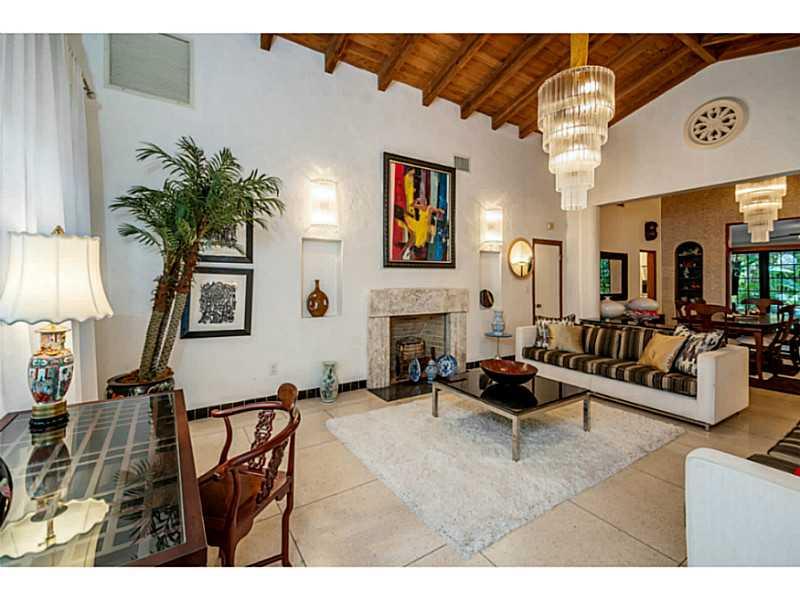 Exquisite architectural details Key West style pool home, garage, 1/2 mile to Miami Beach. Soaring cathedral ceilings with wood beams. Updated gourmet kitchen, gas range, eat-in, formal dining room. Coral fireplace. Built-in cabinetry, crown molding. Marb le, original Florida pine wood & inlaid terrazzo floors. French doors to paver patio, heated pool, enjoy South Florida lifestyle & sea breezes. Tranquil & private backyard embellished by tropical trees & shrubs. Walk to church, synagogue, cafes, shops.