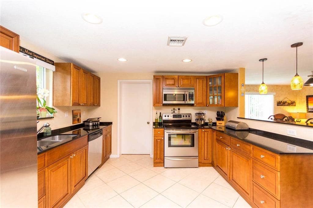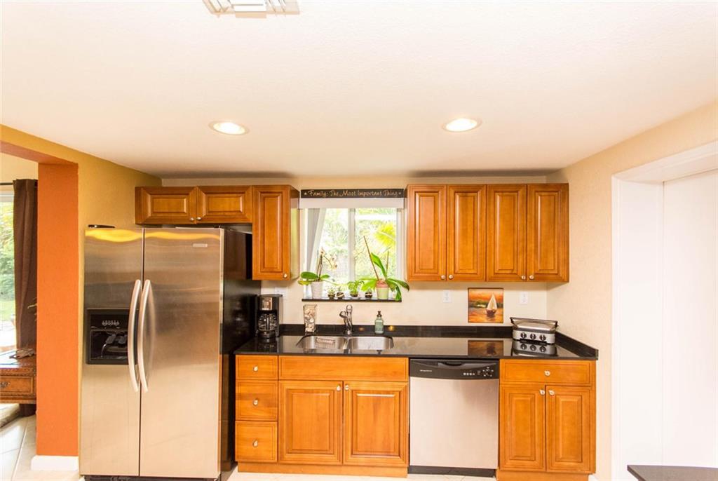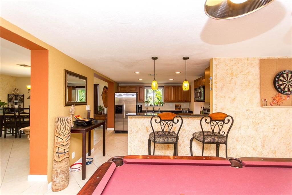 Lush tropically landscaped home located east of US1, 3 Bd/2 ba/1 car carport home with Bermuda roof and new flat roof, PGT impact windows and doors throughout, Open floor plan with remodeled kitchen/granite and stainless steel appliances which opens to family room, pool table room, or dining room, Tile flooring in main areas and carpet in bedrooms, New AC in July 2012, Less than mile to the beach, 14th Street boat ramp, a ton of great shops/restaurants and parks, golf course, tennis cts nearby