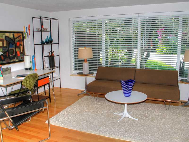 Incredible Mid Century Modern home. Updated Kitchen and Bathrooms, 2 bedrooms plus den, working fireplace, new pool, new driveway, new impact windows and doors, new in-line hot water heater, all new appliances, New fence and landscaping, beautiful wood and terrazzo floors, walking distance to shopping, banking and dining. This is a great home for entertaining, both bedrooms open to the pool. This home is move in ready. You must see this home to appreciate all it has to offer.
