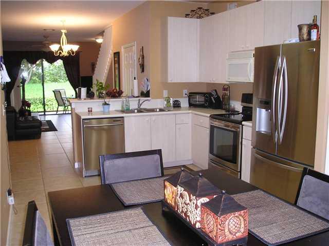 MINT CONDITION! KITCHEN W/EAT-IN BREAKFAST AREA, STAINLESS STEEL APPLIANCES, NEUTRAL OVERSIZED STONE-LIKE TILE 1ST FLOOR, BEAUTIFUL REAL WOOD FLOOR ON 2ND. 2 SUITES W/WALK-IN CLOSETS. 1 W/ROMAN TUB, COVERED PATIO W/STORAGE RM, PAVER DRIVE & WALK. HURRICAN E PANELS, GARAGE BERM W/PRIVACY HEDGE & WATER VIEW W/MILLION DOLLAR HOMES FAR BEHIND. GATED COMMUNITY! WALK TO POOL & PLAY AREA. EASY ACCESS TO SCHOOLS, SHOPPING & HIGHWAYS.