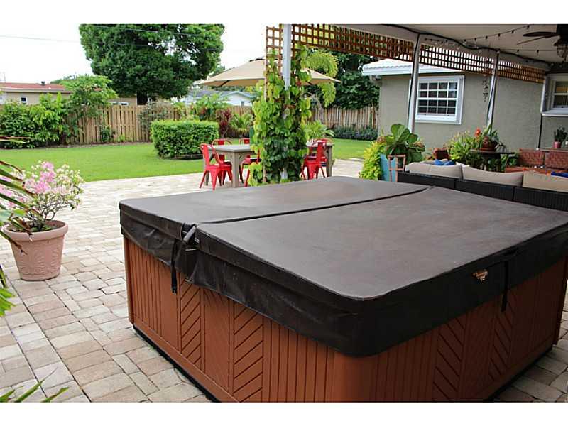 Gorgeous 4 bed/3 bath home in Hollywood Hills. Beautifully updated and open kitchen area with bar, is warm and inviting. This great layout has a split bedroom plan with two updated bathrooms. It has travertine marble and laminate wood throughout. Home has accordion shutters and a new hurricane rated garage door. Home comes with security camera system with remote viewing from a computer or phone! The large, fenced backyard is well landscaped, with a beautiful patio area and hot tub.