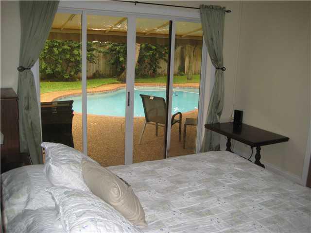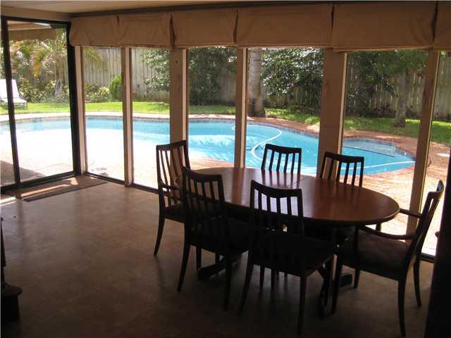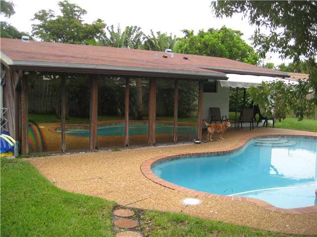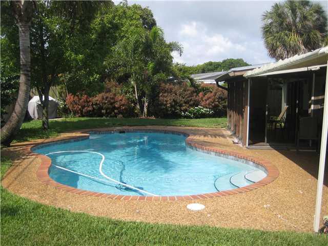 Charming 3 bed/2 bath Single Family Home with garage converted to 4th bedroom. Large original kitchen open to spacious dining room/Florida room area. Master bed has sliding doors with view of pool area. Large separate laundry room. Fabulous outdoor entert ainment space with well maintained salt system pool. Large storage shed and hurricane shutters in enclosed area on side of property. Landscaped yard with 6ft fence around property.
