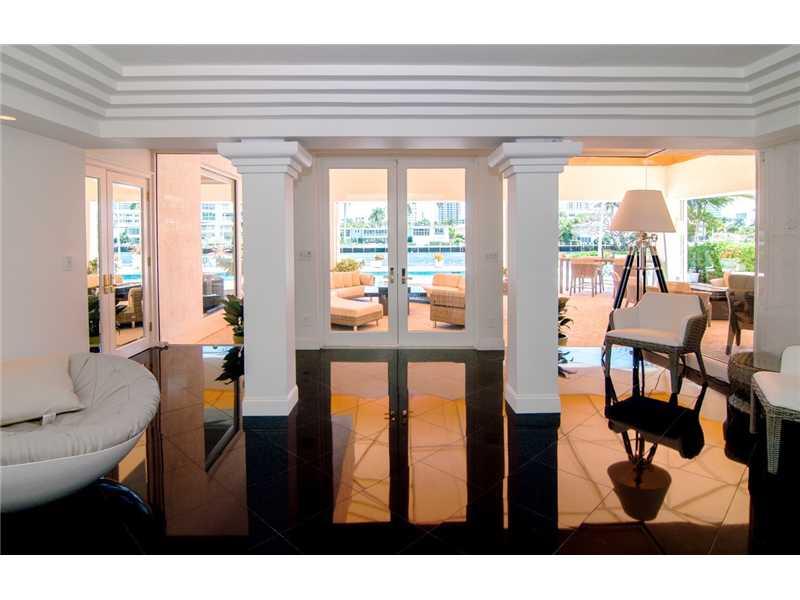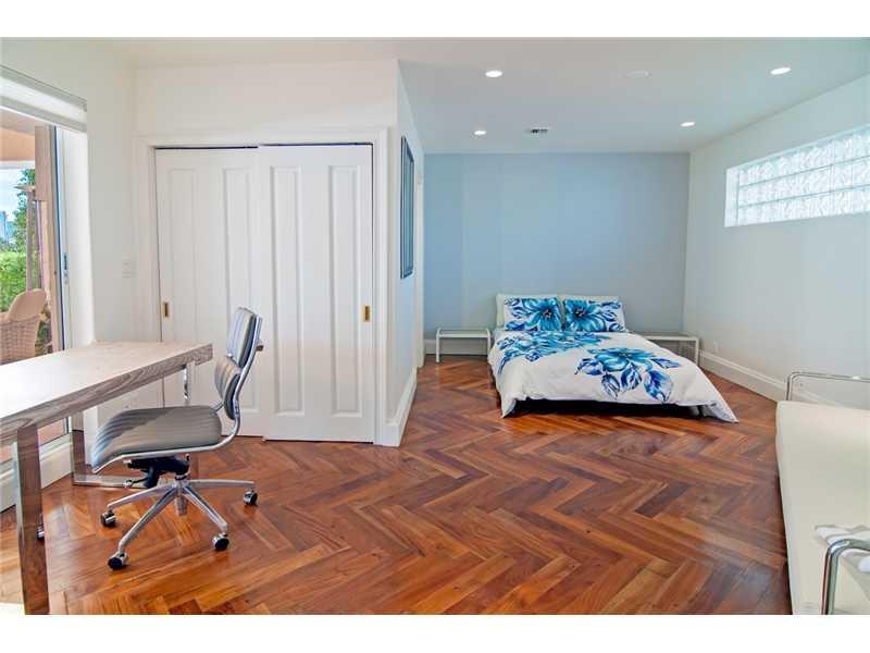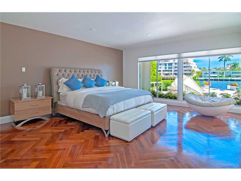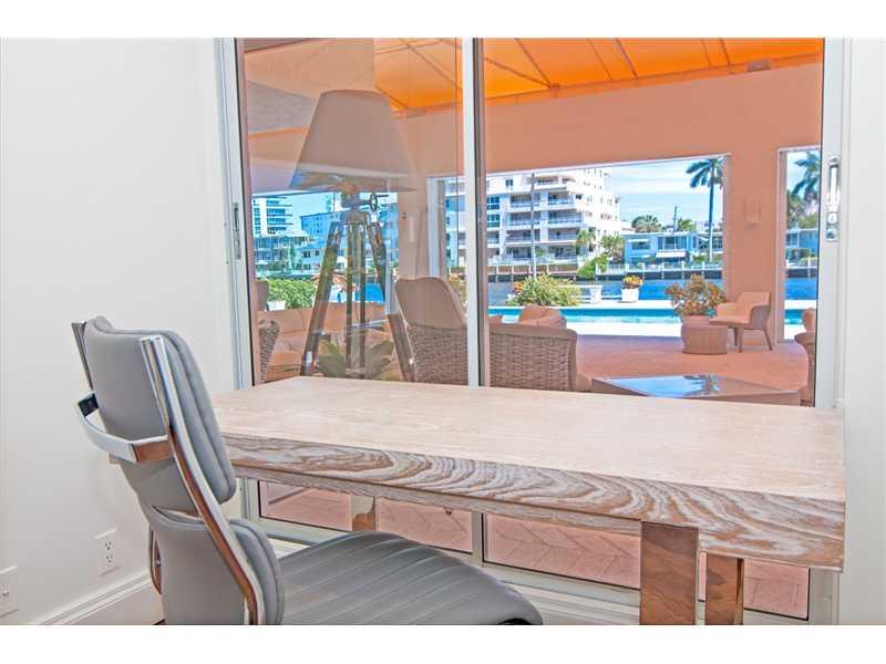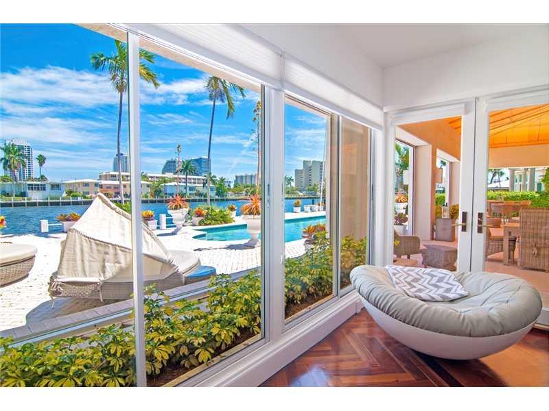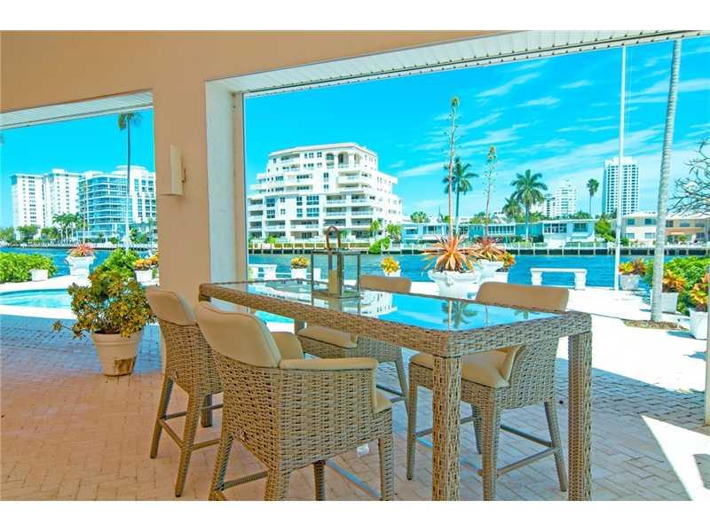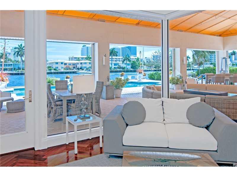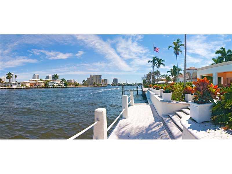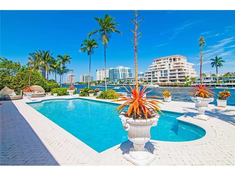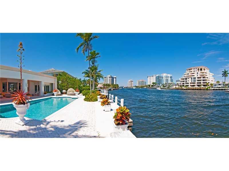 Modern waterfront pool residence w/ Art Deco features in exclusive gated & patrolled Sunrise Intracoastal w/ 100' on Intracoastal.100'x165' lot. Main house: large 2 BR - 2.5 bath + private guest quarters. Modern kitchen w/ custom Downsview cabinetry, Gagg enau & Subzero appliances. Master BR overlooks pool/east. Spa like master bath. Granite, restored wood floors & tiles. Spacious covered 1,500+ sq.ft. patio for several seating areas to entertain your guests. 2 CG + 7 spots. Florida lifestyle at its best!