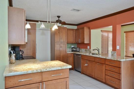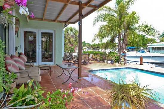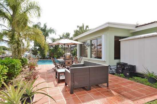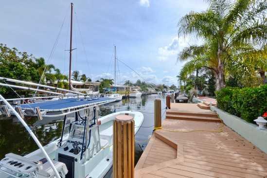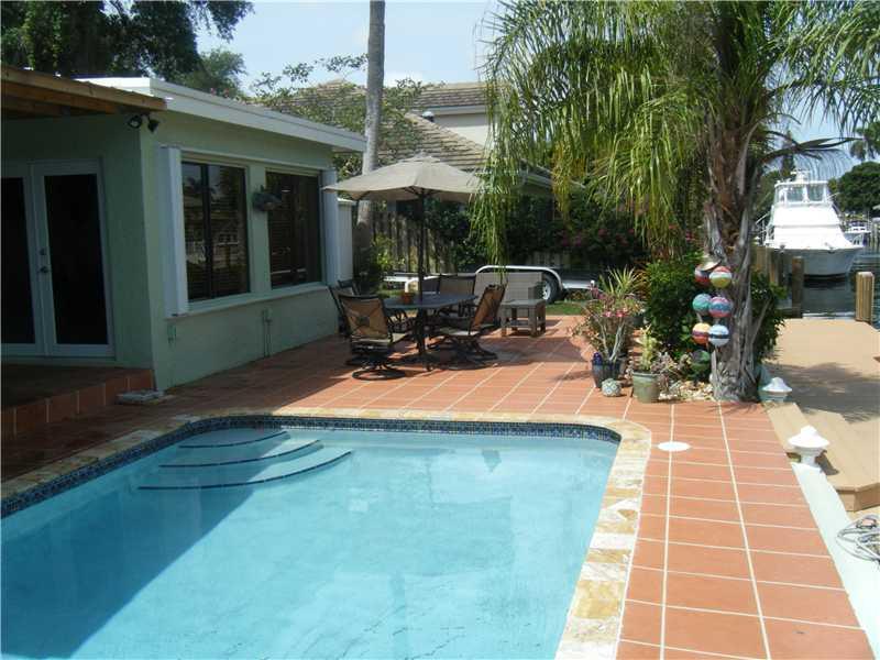 BOATER'S DREAM! This beautifully renovated deep water pool home is located minutes from the Intracoastal,can accommodate a 75 ft. boat & features new: gourmet kitchen w/ wood cabs,granite counters,glass tile backsplash & SS appliances; full bath w/ custo m vanity, lights & tile inlays; composite wood dock,textured pool deck; outdoor lighting,sprinkler system; impact french doors,crown molding, baseboards,& doors;freshly painted interior & exterior; AC; electric;resurfaced pool & marble tiles & much more.
