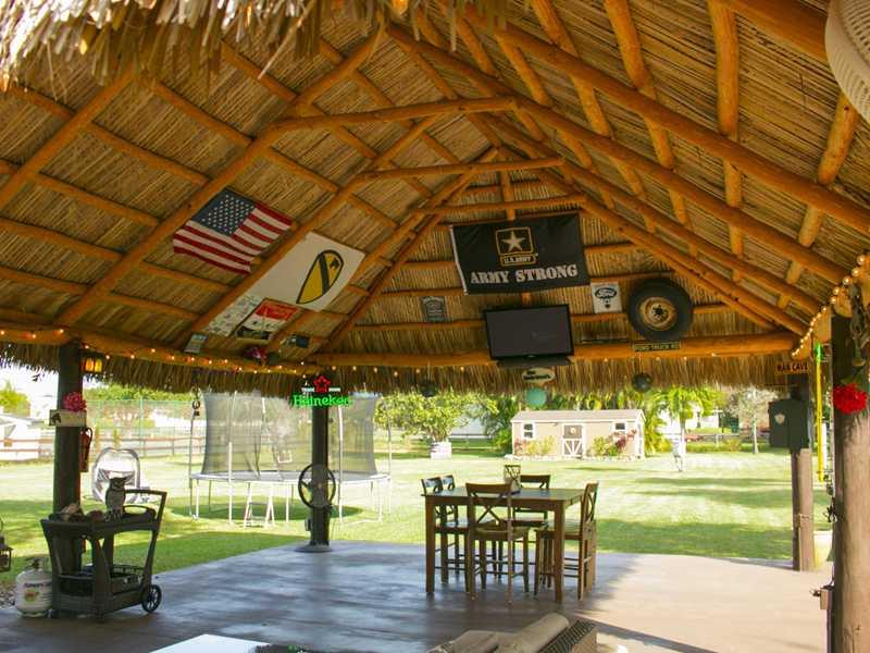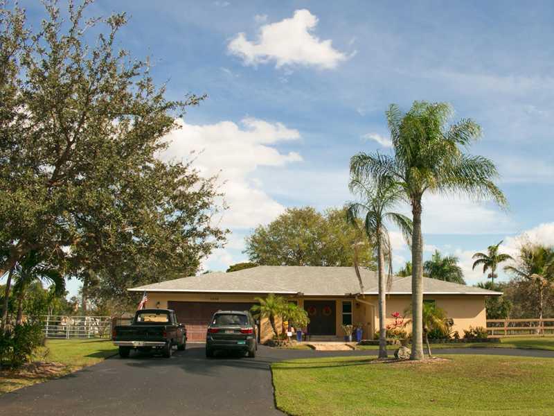 MUST SEE THIS UNIQUE, ONE OF A KIND, NO HOA, DAVIE ACREAGE HOME WHERE 4 LIVESTOCK (i.e. HORSES) ARE PERMITTED. BACKYARD IS AN OASIS WITH PALM TREES--HUGE TIKI HUT AND A SPECIAL PLACE JUST FOR GRILLING. AS YOU WALK INTO THIS HOUSE, YOU CANNOT HELP NOTICING THE MARBLE FLOORS THROUGHOUT AND THE KITCHEN THAT IS A WORK OF ART WITH STAINLESS STEEL APPLIANCES, EXQUISITE GRANITE & DESIGNER KITCHEN CABINETS. ENTERTAINING IS A DELIGHT! FEELS LIKE YOU ARE ON A PERMANENT VACATION. ALSO, IMPACT WINDOWS. COME SEE!