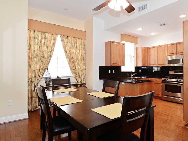 Upgraded townhome in east Victoria Park!Full 2-car garage plus full bath & bedroom on 1st level. 2nd level w/ large living room & defined dining area all real hardwood floors; kitchen boasts granite, stainless, and a gas range! Open staircase leads to 3rd level master, walk-in closet, duel sinks in bath. 2nd bedroom has ensuite bath. 10' ceilings, two-zoned A/C, custom drapery; gated courtyard and community pool compliment the location. Walk to Fresh Market, restaurants, shops. Close to downtown & beach.