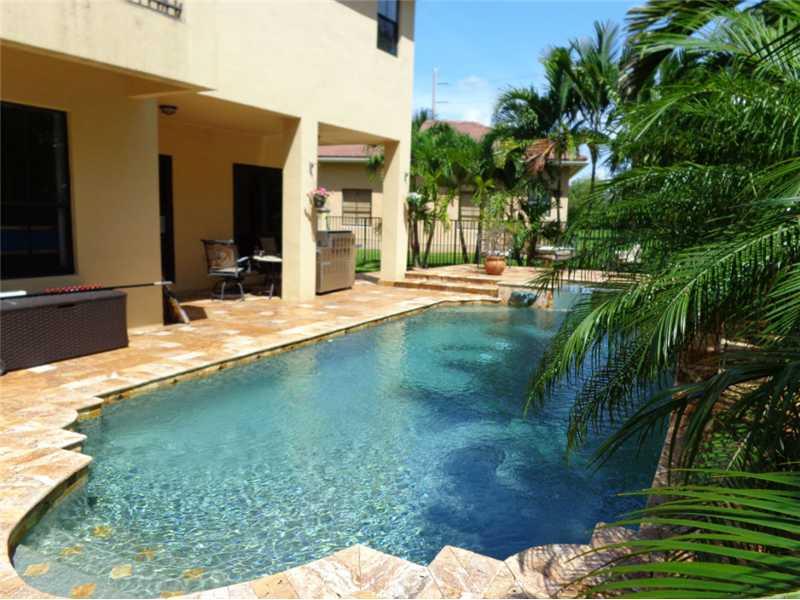 Best of South Florida living in prestigious gated Harbour Lakes Estates. Largest model of 5 bed/4.5 bath w/ 3 car garage. Circle driveway. Entry has 20' ceilings & custom fireplace. Marble floors throughout main living area. Huge kitchen & great room over look pool. Curved custom staircase to large gallery for 4 upstairs bedrooms. Huge master suite w/ sitting area. 2nd suite great for in-law quarters. Custom salt-water pool w/ waterfall & sauna. 2-level stone deck around pool. 2 A/C units. Guard on site.