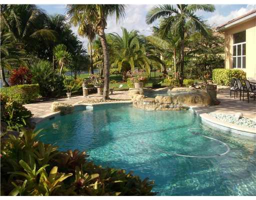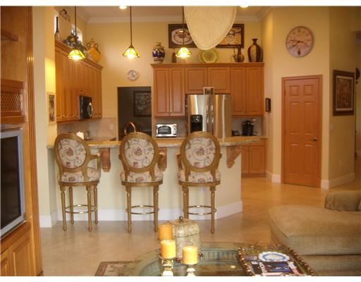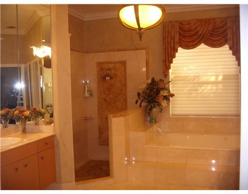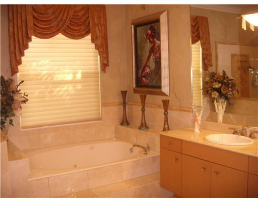 Unsurpassed elegant home in upscale guard-gated community. Travertine marble floors, granite counters, wood cabinets, Luxurious master suite & bathrms, Lge. Living & Family rms w/custm center & bamboo paddle fan. Designer details: Venetian walls, cust. dr apes, double-crown molding & tiffany lamps. Premium lot w/long,wide lake views, unrivaled sunset, lndscping, htd pool/spa, rock fountains, patio & Trop.garden. Crème d'marfil bthrm w/SpaTub, cabana bath, surround sound, freezer, Generator, Tractor Mwr!