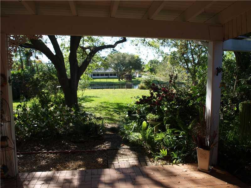 Country Ranch Estates home on 1 acre, 3 bedroom/2 bath with a wood burning fireplace in the living room. Kitchen has an island & breakfast area. Family room can be used as a playroom or office. Beautiful Mexican tile floors. Large Master bedroom w/2 clos ets. Most closets have organizer systems. over sized covered porch to enjoy the view of garden & canal. This property offers oak trees & mature landscaping, also includes 2 shade houses for orchids/plants. New AC unit in 2013. Great opportunity!