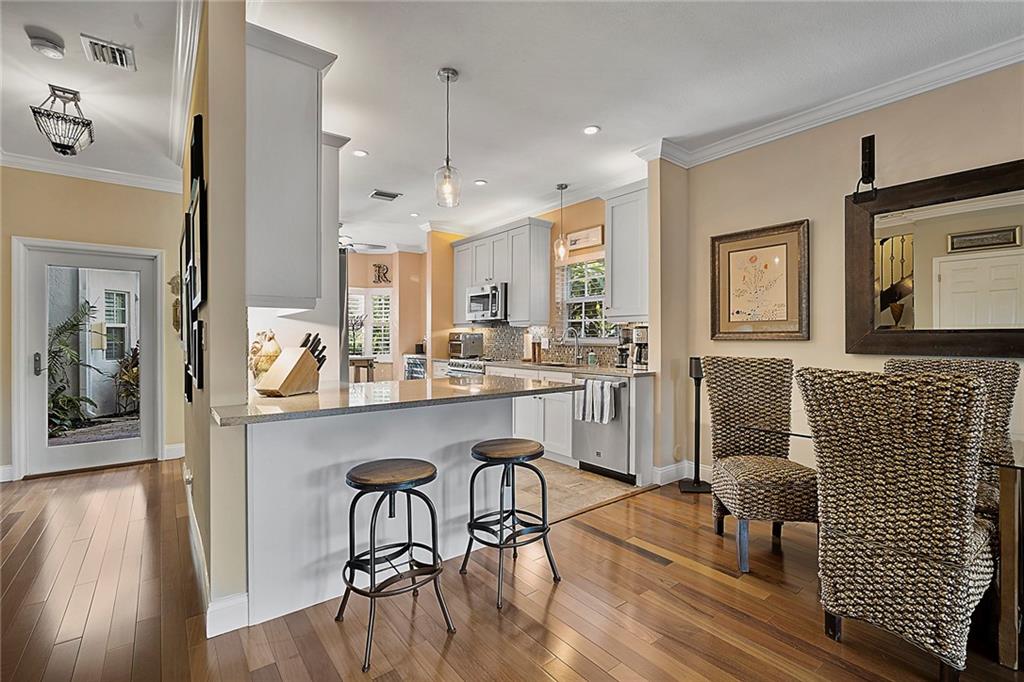Exceptionally priced, meticulously maintained 3 BR, 2.5 BA townhome in the heart of Victoria Park. Boutique gated complex w/ only 8 units which share a courtyard complete w/ a large pool, sitting areas & beautiful tropical landscaping. Notable features include magnificent Brazilian hardwood flooring, a completely updated kitchen and a private, fenced outdoor space w/ over-sized electronic awning. Noteworthy improvements: stone tile kitchen flooring, pro series ss apps, granite counters, tile back-splash, Plantation shutters, crown moldings, recessed & pendant lighting, ceiling fans, phantom screens, impact windows & much more. Upper level offers a spacious master suite w/ walk in closet, two additional bedrooms, a full bath bath and laundry area. Monthly fee covers many items of ownership.