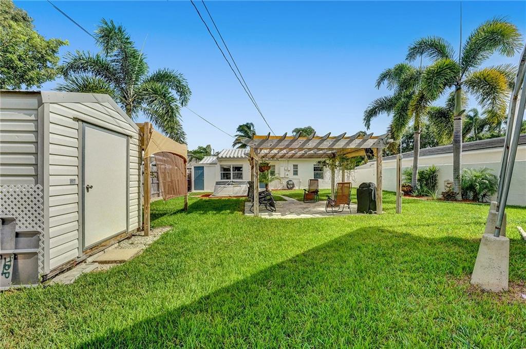 Incredibly well maintained 3/2 home just minutes to famous Fort Lauderdale Beach. Great Florida feel with an incredible backyard. Plenty of room for your boat or camper or BOTH. Not 1, but 2 electrified professional sheds for storage. Gorgeous tile floors in the main area. Updated kitchen with stainless steel appliances. Beautiful paver circular drive. Backyard is fully fenced for privacy with a shaded pergola. Newer windows with hurricane shutters.